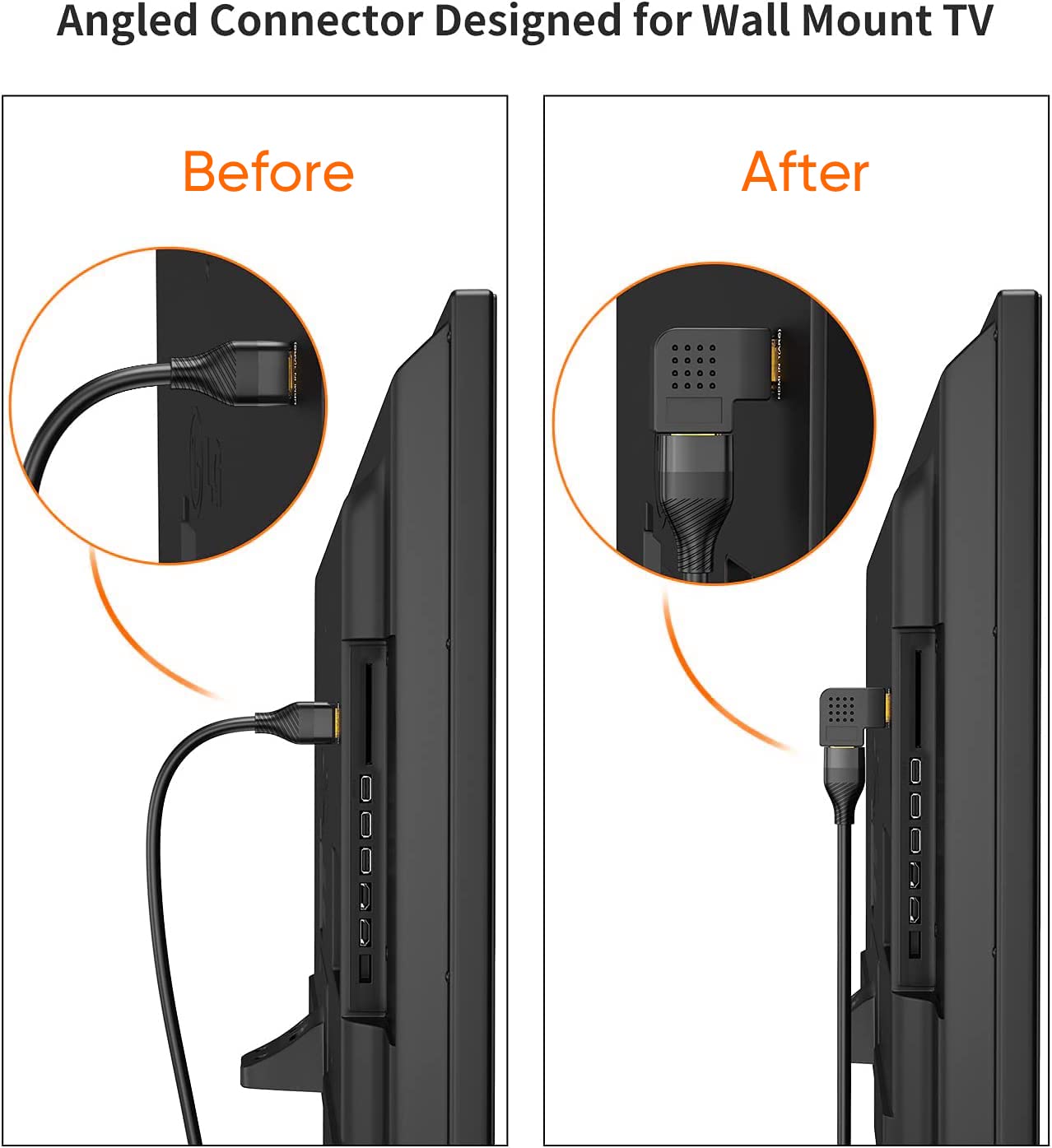 - Space-Saving Design: CableCreation 90-Degree and 270-Degree HDMI converters are designed to extend HDMI cables in narrow places, protecting them from bending risks. This allows the HDMI cable to be tightly close to the device, saving more space and making it easier to use.