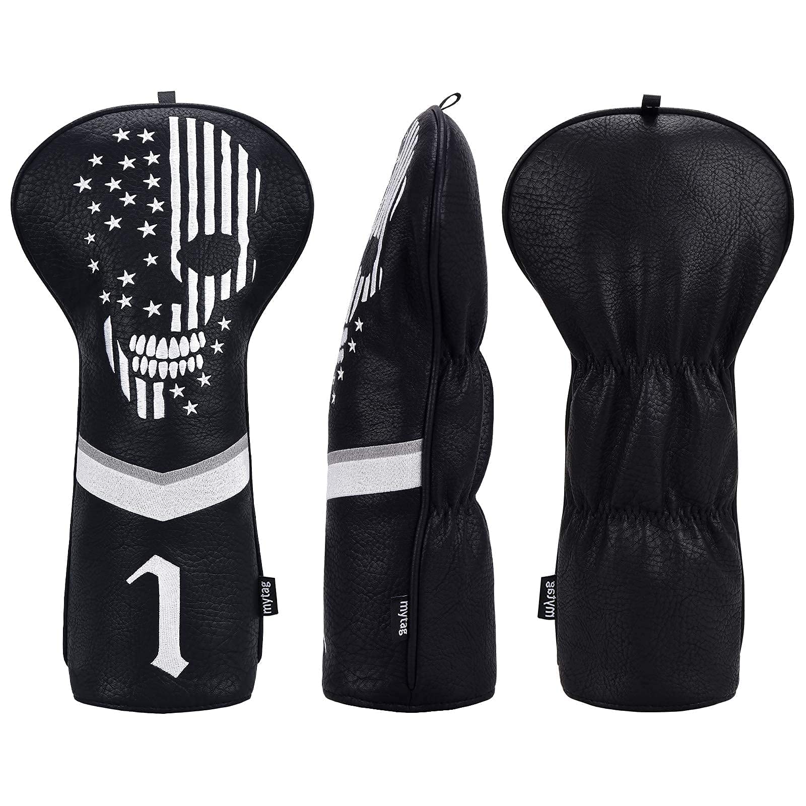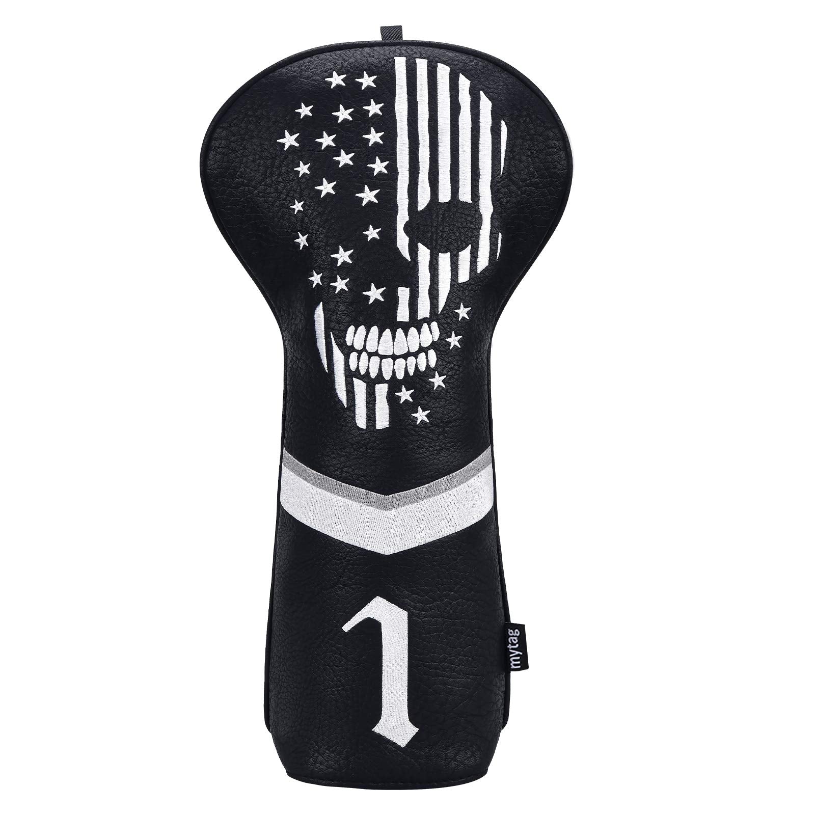 - Original Head Covers – mytag Golf Skull Skeleton Head Cover Golf Club Black Leather Headcovers Set Fits Driver Fairway Wood Hybrid (1pc Driver Cover) by caiobob