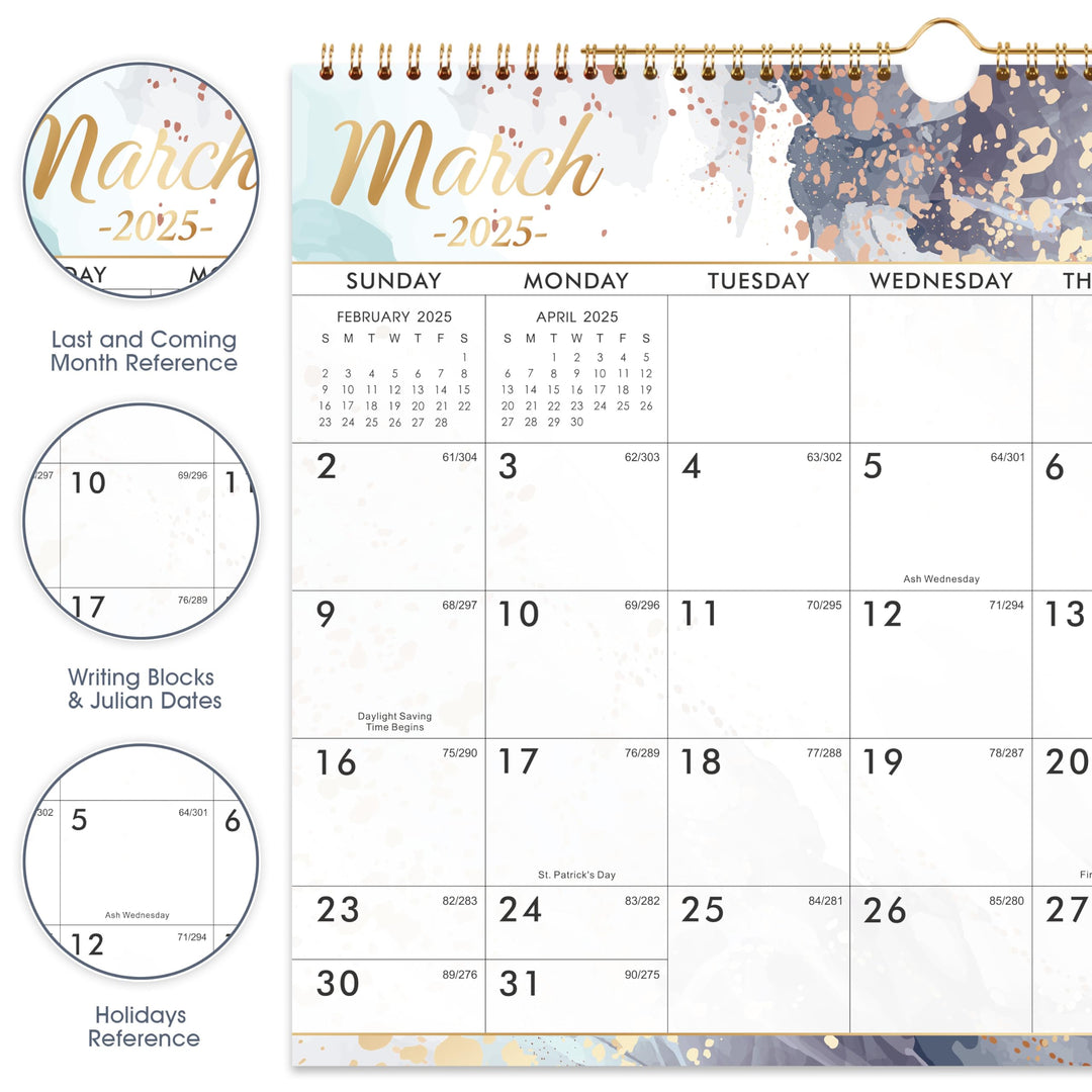 - MONTHLY PAGE OVERVIEW - Each page of this wall calendar is features with past and future monthly reference for quickly planning & Marked Holidays can remind you important dates & Julian date.