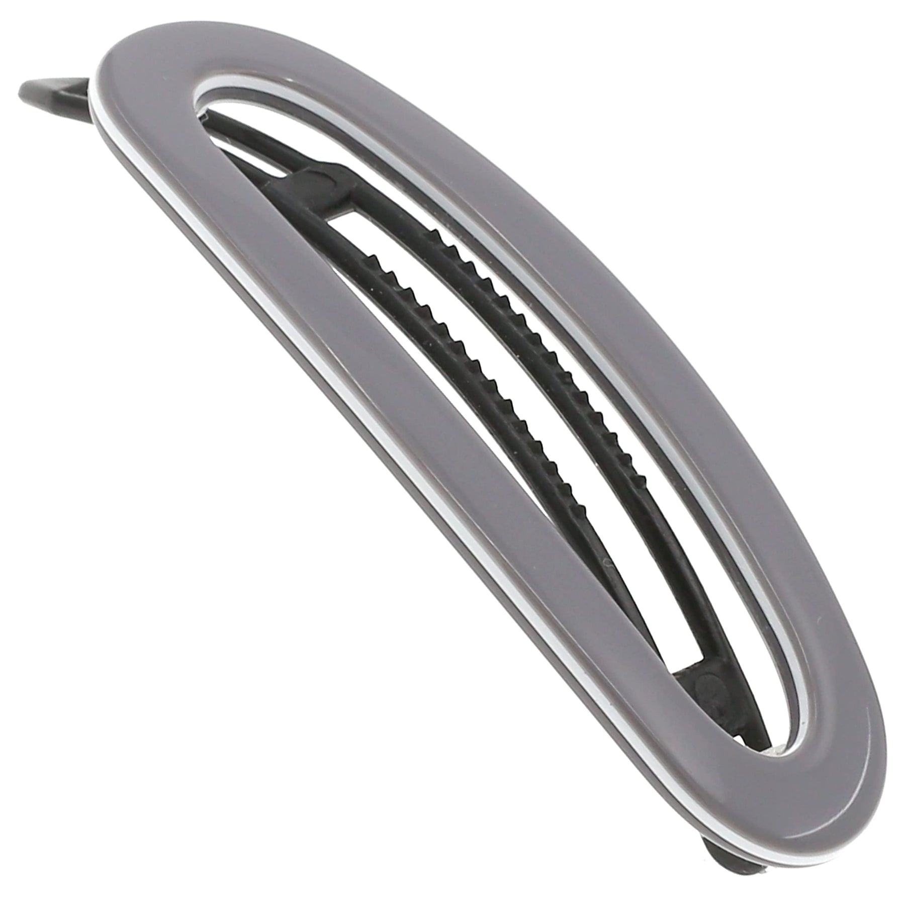- Made in France CP3366 Size: 2.5 Inch Handmade Gray and White with Metal-Free Closure. Never have a bad hair day. Hair fashion jaw clamp beauty accessory for womens. Ladies butterfly clamps with super strong solid spring for thick or fine, long and shorter hair. Perfect for creating easy hairstyles; partial quick updo or bun or full updos, holding your hair securely and tightly in place without any discomfort