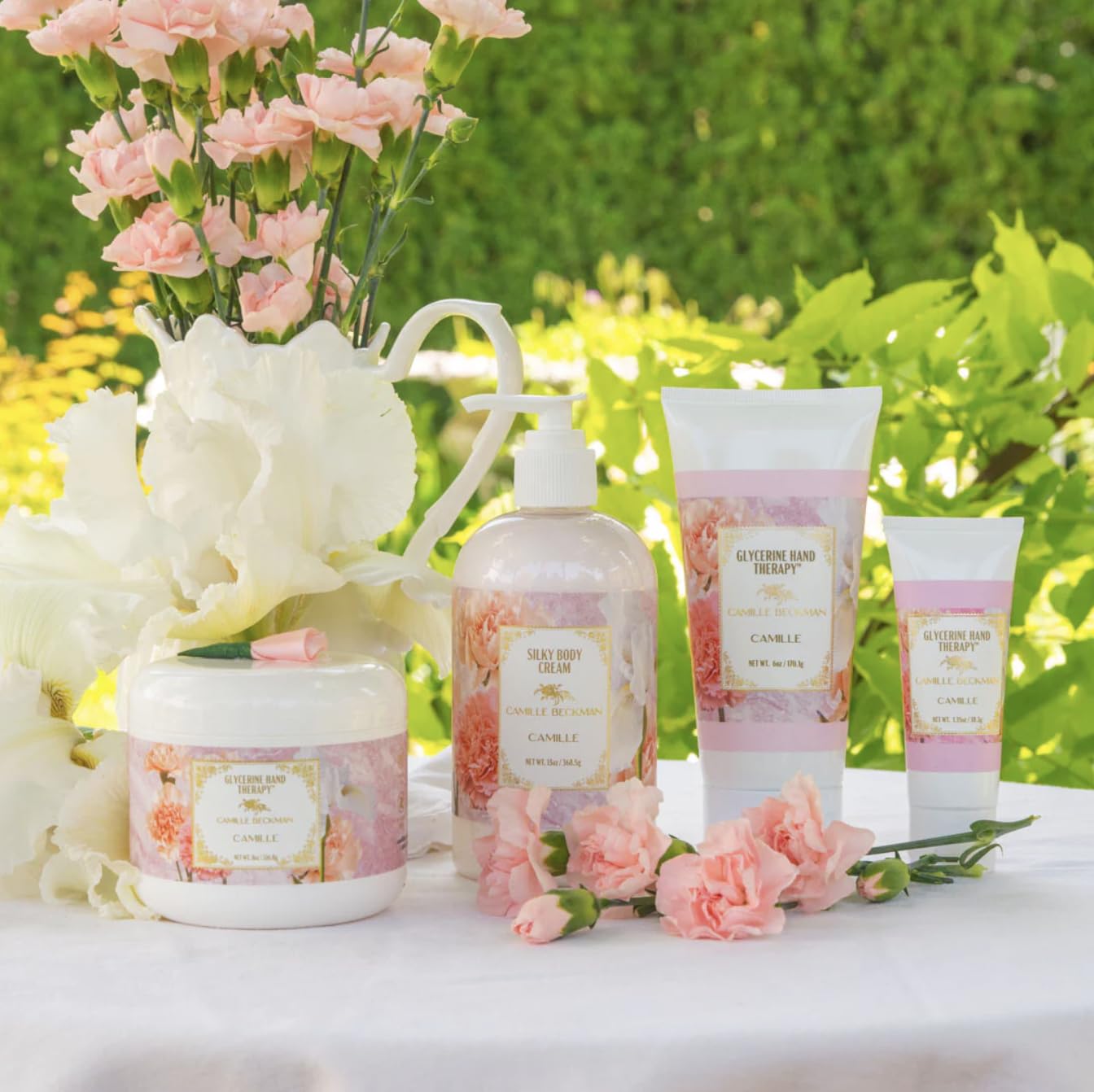 - Camille beckman's signature cashmere powdered floral scent with notes of iris and pink carnations