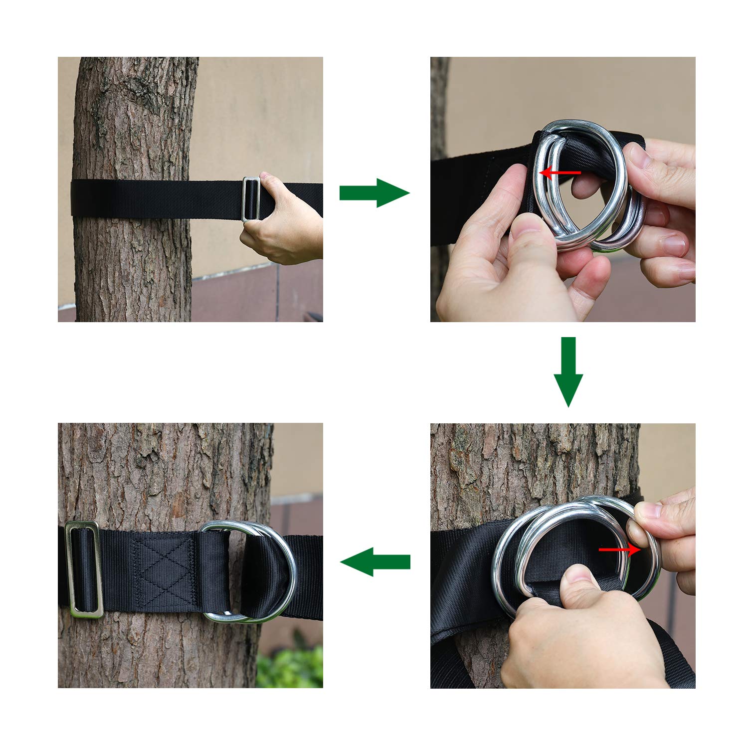 - Unique 4D-Ring Design:The Camping hammock straps with 4D-Ring,you can arbitrarily tie on the Tree trunk or branch.Unique method of use to prevent the straps from coming off while swinging and 4D-Ring can double the bearing capacity