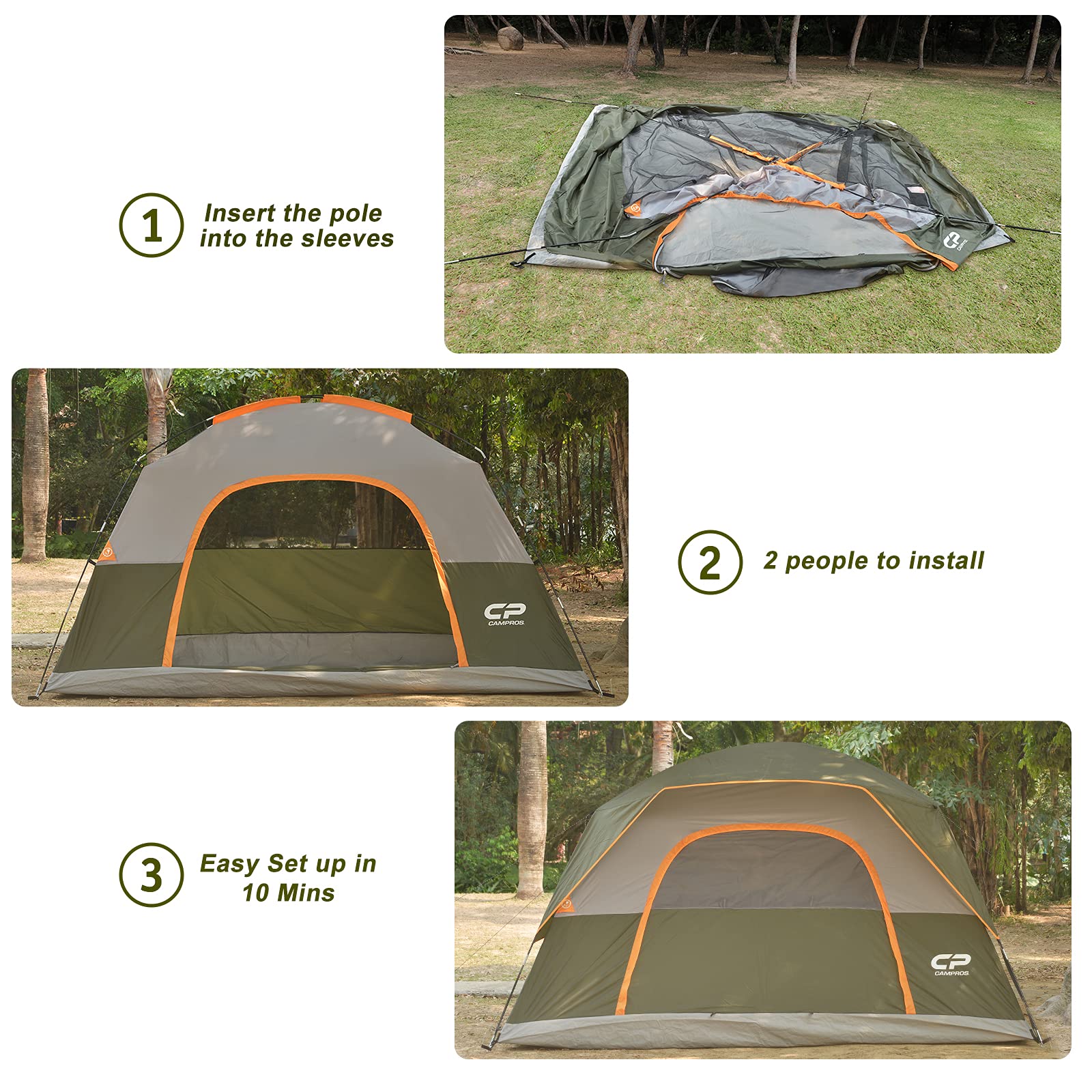 - Original Tents – Tent 8 Person Camping-Tents, Waterproof Windproof Family Dome Tent with Top Rainfly, Large Mesh Windows, Double Layer, Easy Set Up, Portable with Carry Bag - Olive by CAMPROS CP