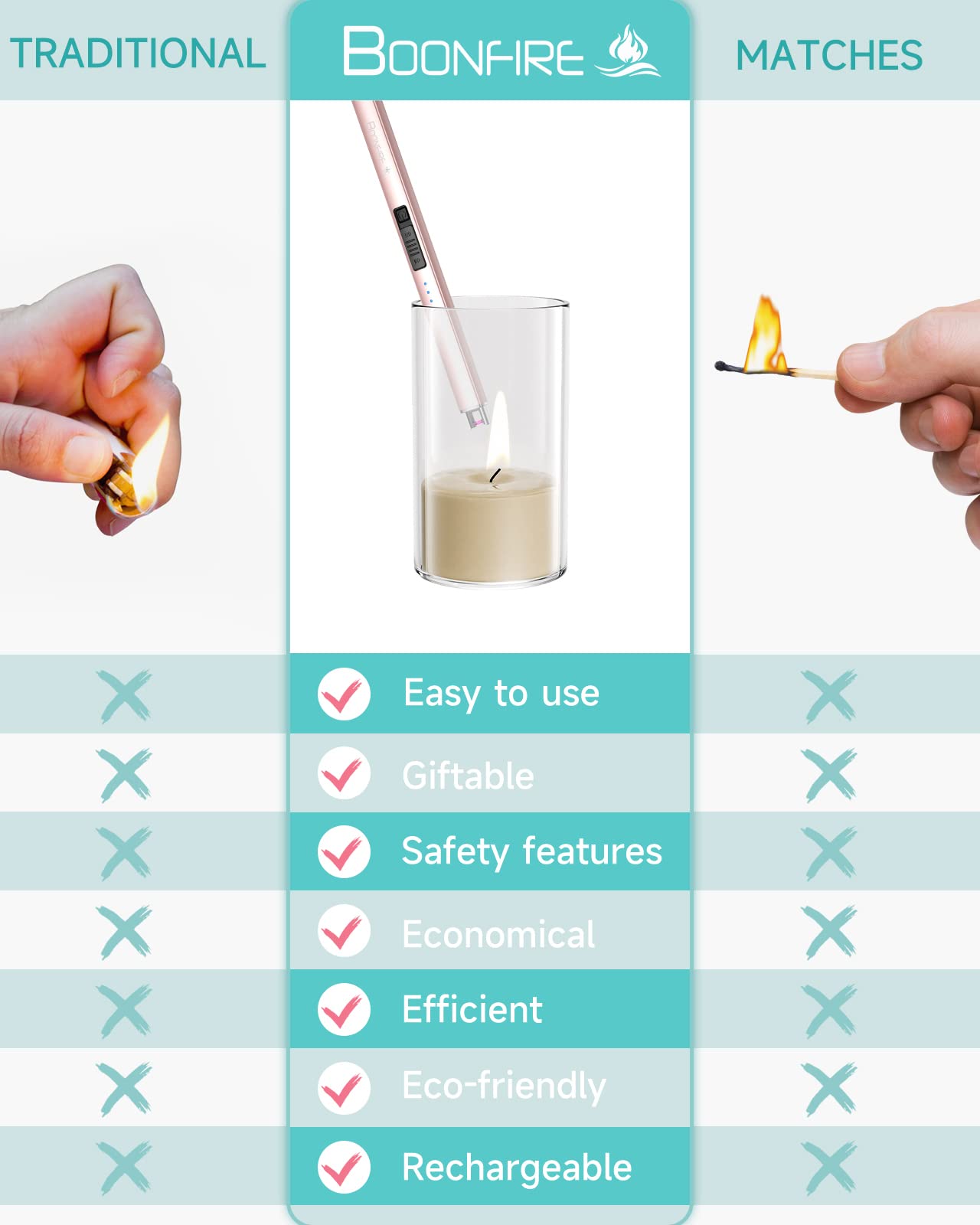 - Original Lighters – Candle Lighter, Electric Rechargeable Arc Lighter with LED Battery Display Portable USB Charging Flame-Less Windproof Lighters for Light Candles Gas Stoves Camping Barbecue(Rose Gold) by Boonfire