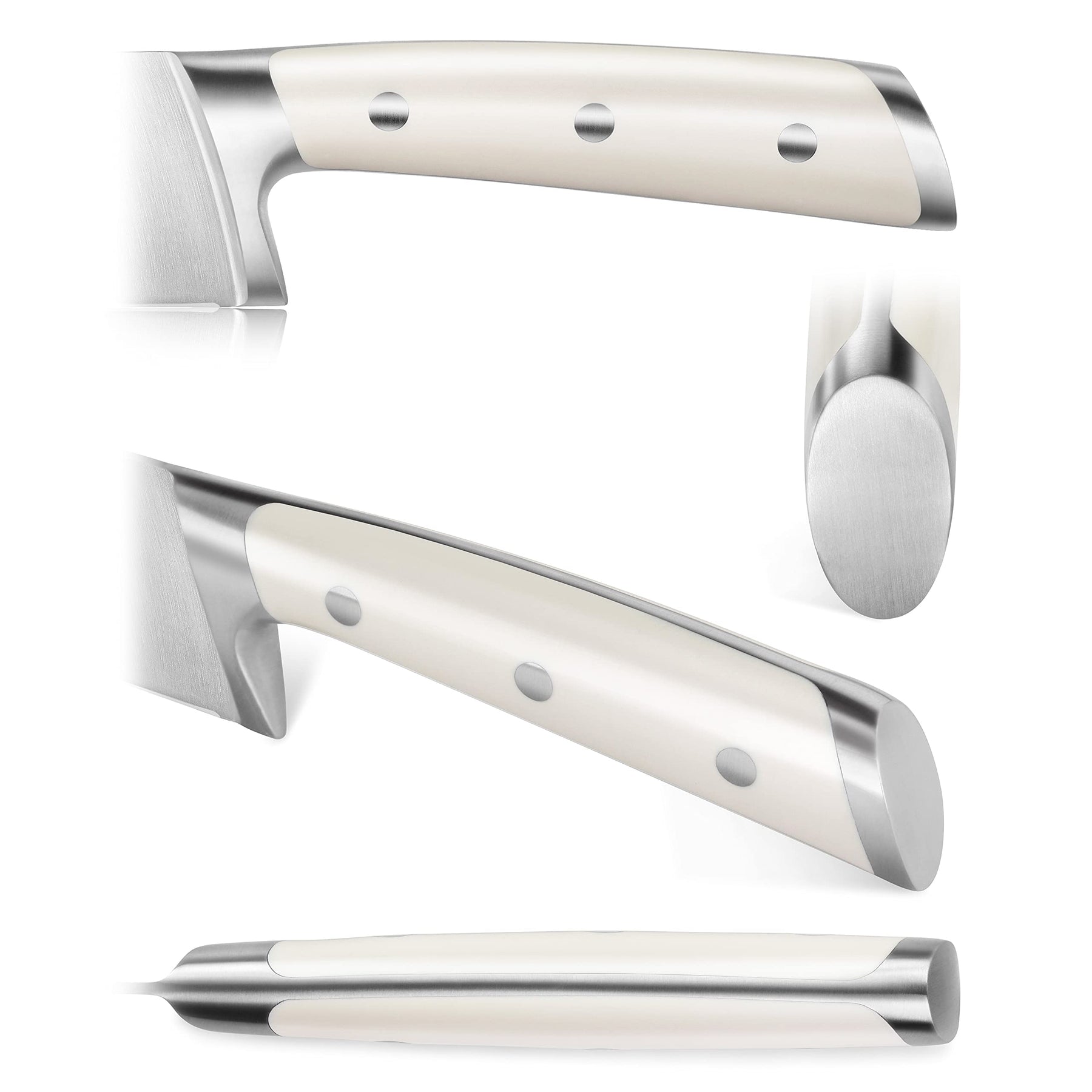 - Hand crafted full tang knives forged from tight grained, X50CrMoV15 German Steel for incredible durability, stain resistance and exceptional edge retention.