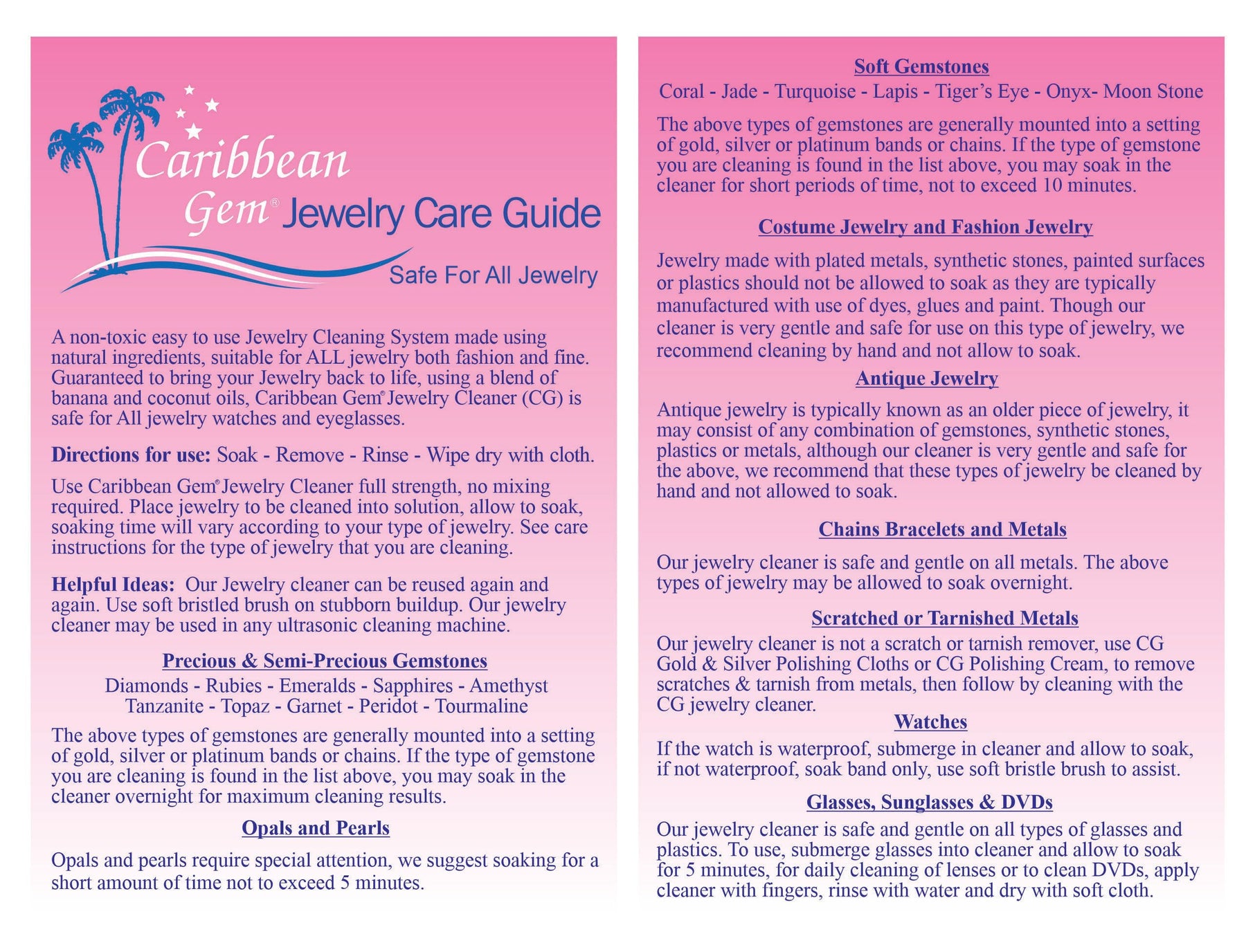 - Original Cleaning & Care – USA, 4 Pack, Polishing Cleaning Cloth, for Gold, Silver, Platinum Jewelry, All Metals, Non-Toxic, Restores Luster and Brilliance by Caribbean Gem