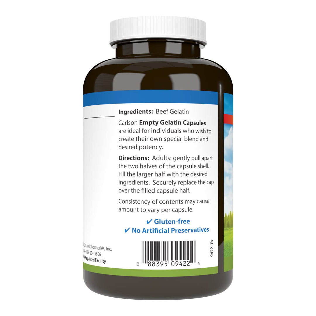 - EMPTY GELATIN CAPSULES - Carlson Empty Gelatin Capsules are easy to pull apart and fill.