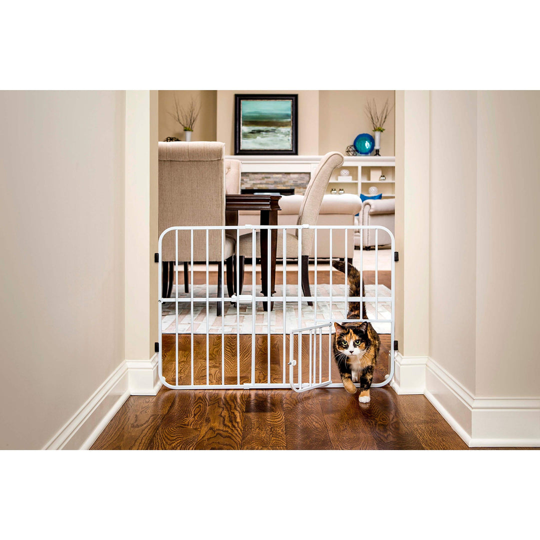 - Original Doors, Gates & Ramps – Tuffy Metal Expandable Pet Gate, Includes Small Pet Door, 24 x 22-38 Inch, White by Carlson Pet Products