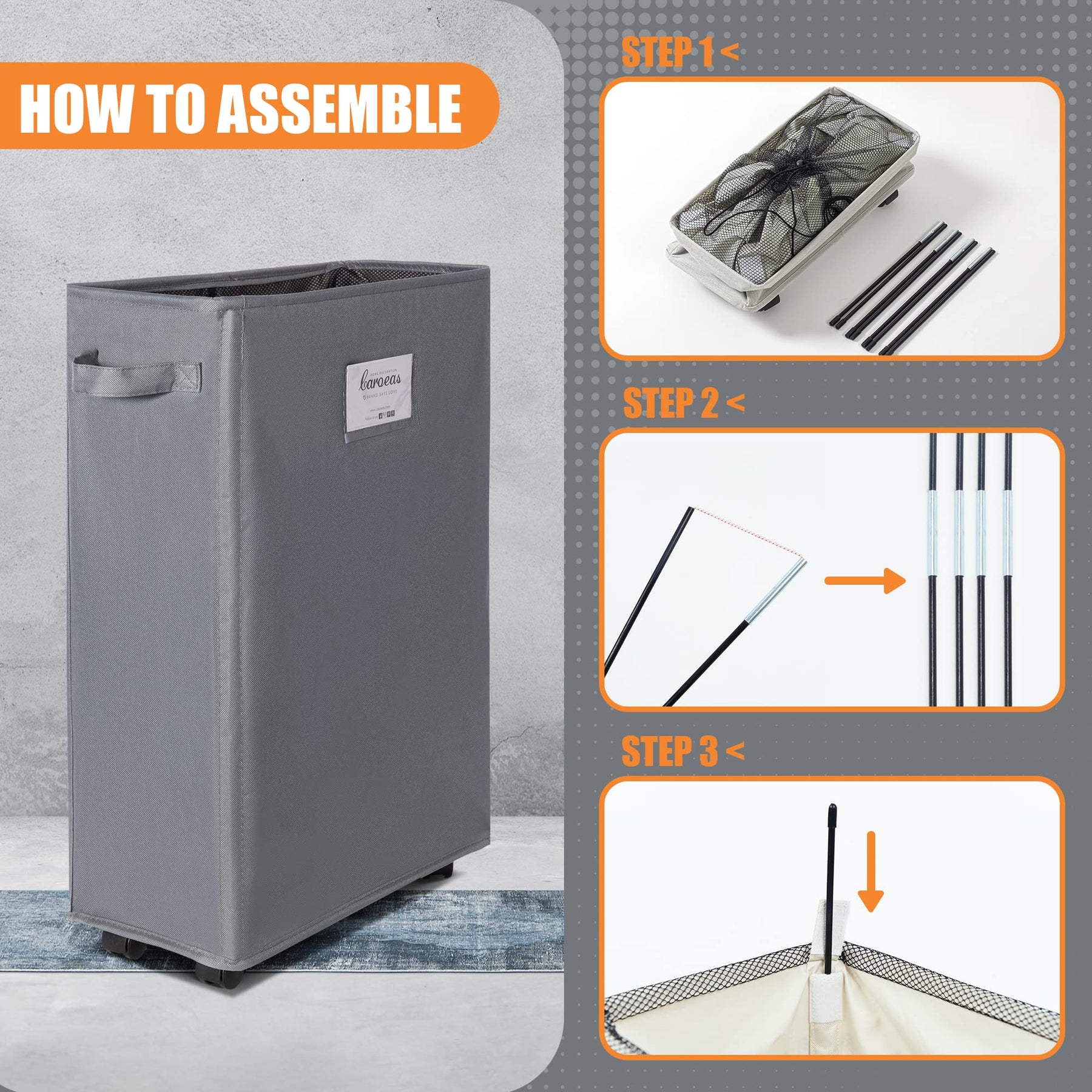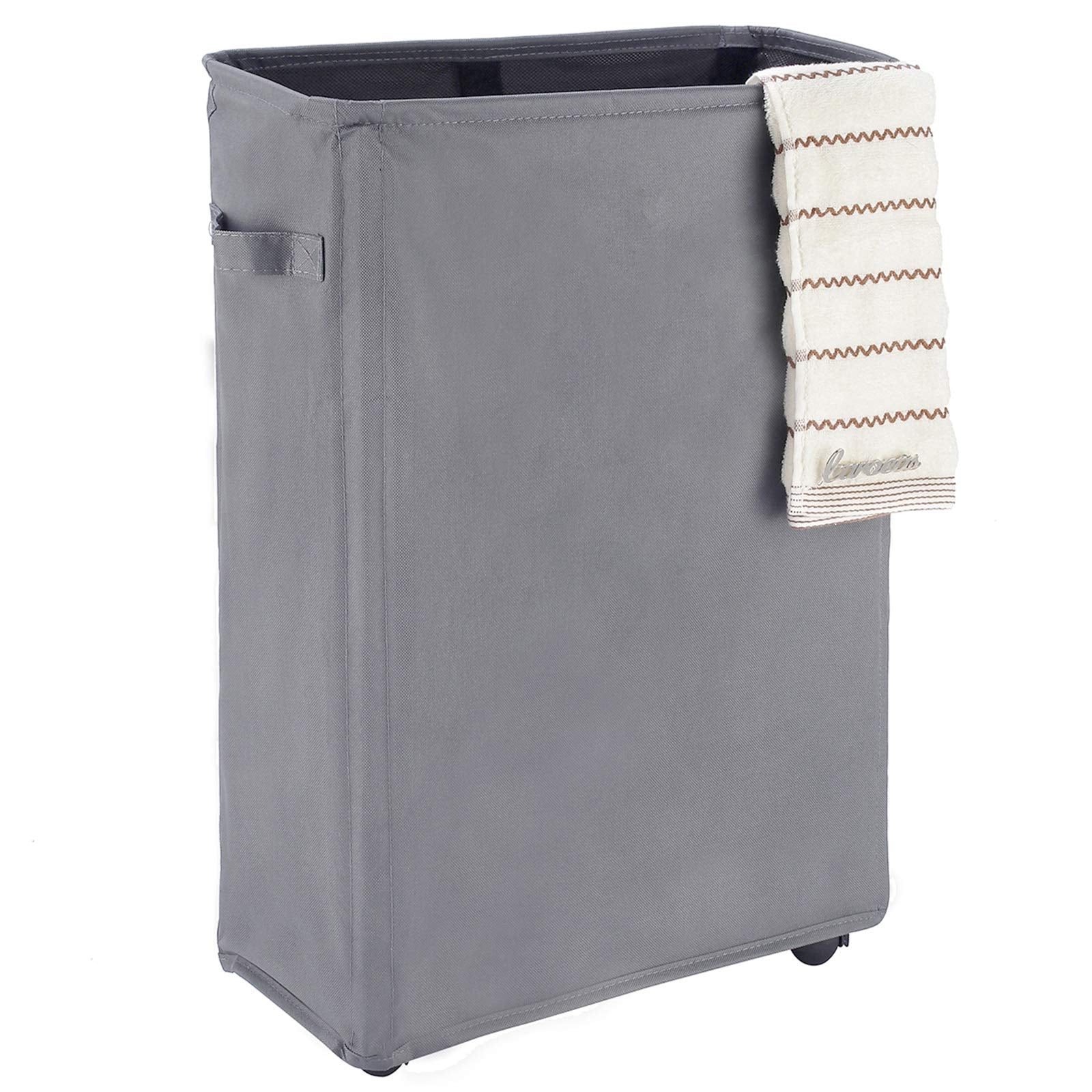 - Original Laundry Hampers – 22 Slim Rolling Laundry Basket with Card Waterproof Laundry Storage Hamper Corner Fittable Storage Bag Collapsible Rolling Hamper Flexible Laundry Bag On Wheel For Home,Office (Slim 22,Grey) by Caroeas