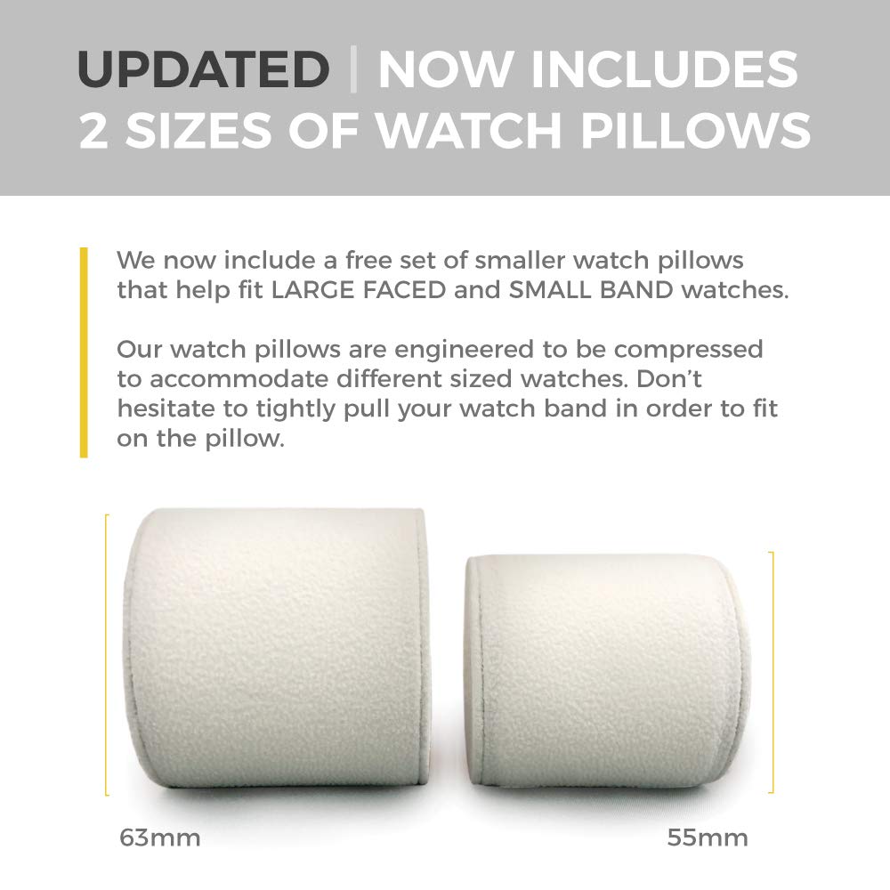 - Travel in Style: Our Case Elegance watch organizer is the ultimate travel companion. Its compact and lightweight design makes it easy to carry, while the inclusion of two sets of pillows ensures compatibility with watches of all sizes. Journey with your watches in style and peace of mind.