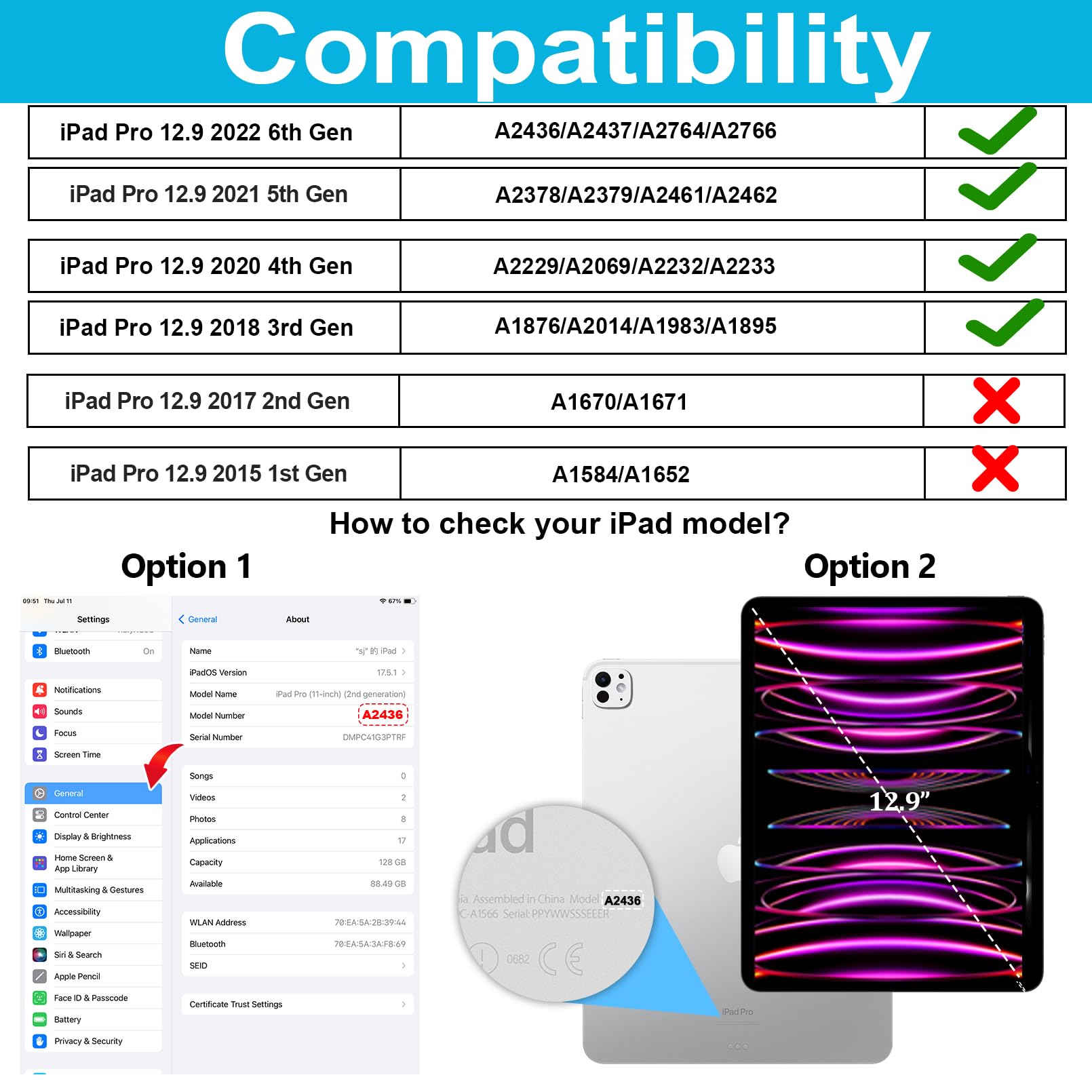 iPad Pro 12.9 Case 2022 6th Generation ( Model: A2436, A2437, A2764, A2766);iPad Pro 12.9 Case 2021 5th Generation ( Model: A2378, A2379, A2461, A2462)