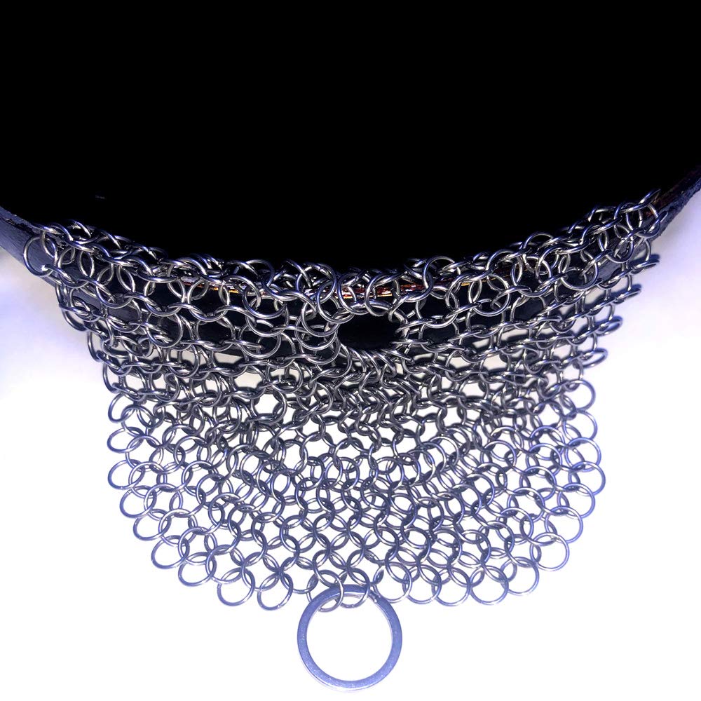 The diameter 7 inch Chainmail Scrubber makes fast work of tough cleanup jobs on just about all the pots and pans in the kitchen, including stainless steel, enameled cast iron, hard anodized, copper and glass.