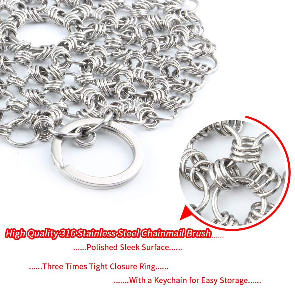 - High Quality Cast Iron Cleaner - Made of 316 stainless steel with tripe ring, ideal for cleaning all your cast iron cookware, more durable and sturdy than other Cast Iron Cleaner. Instead of using one sponge per clean, our cleaning tool is reusable, no more stinky scrubbers, sponges or scouring pads needed. Can save your money. Even repeated use do no cause it to to stink.