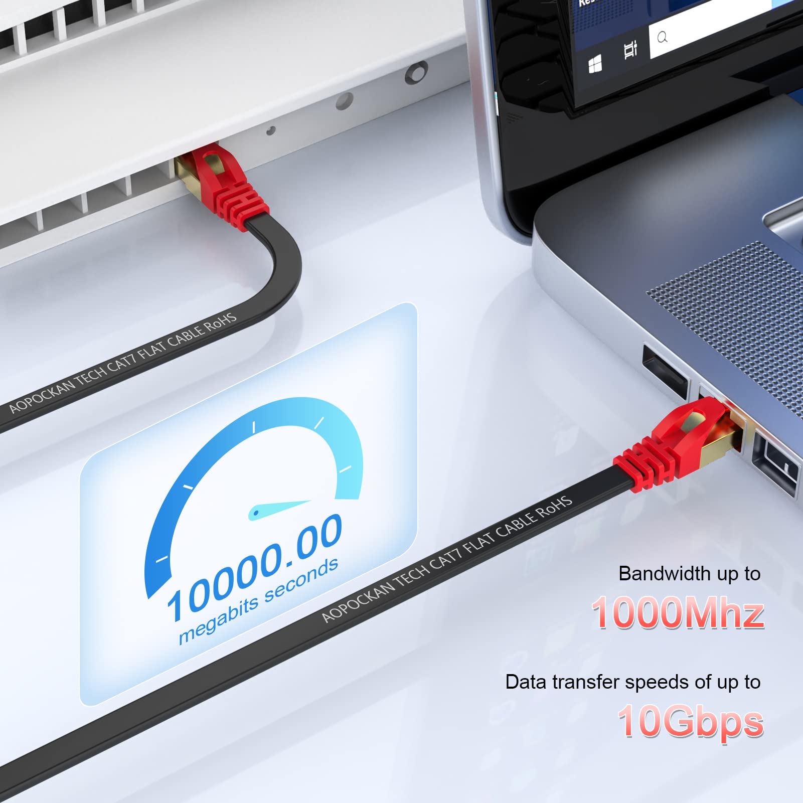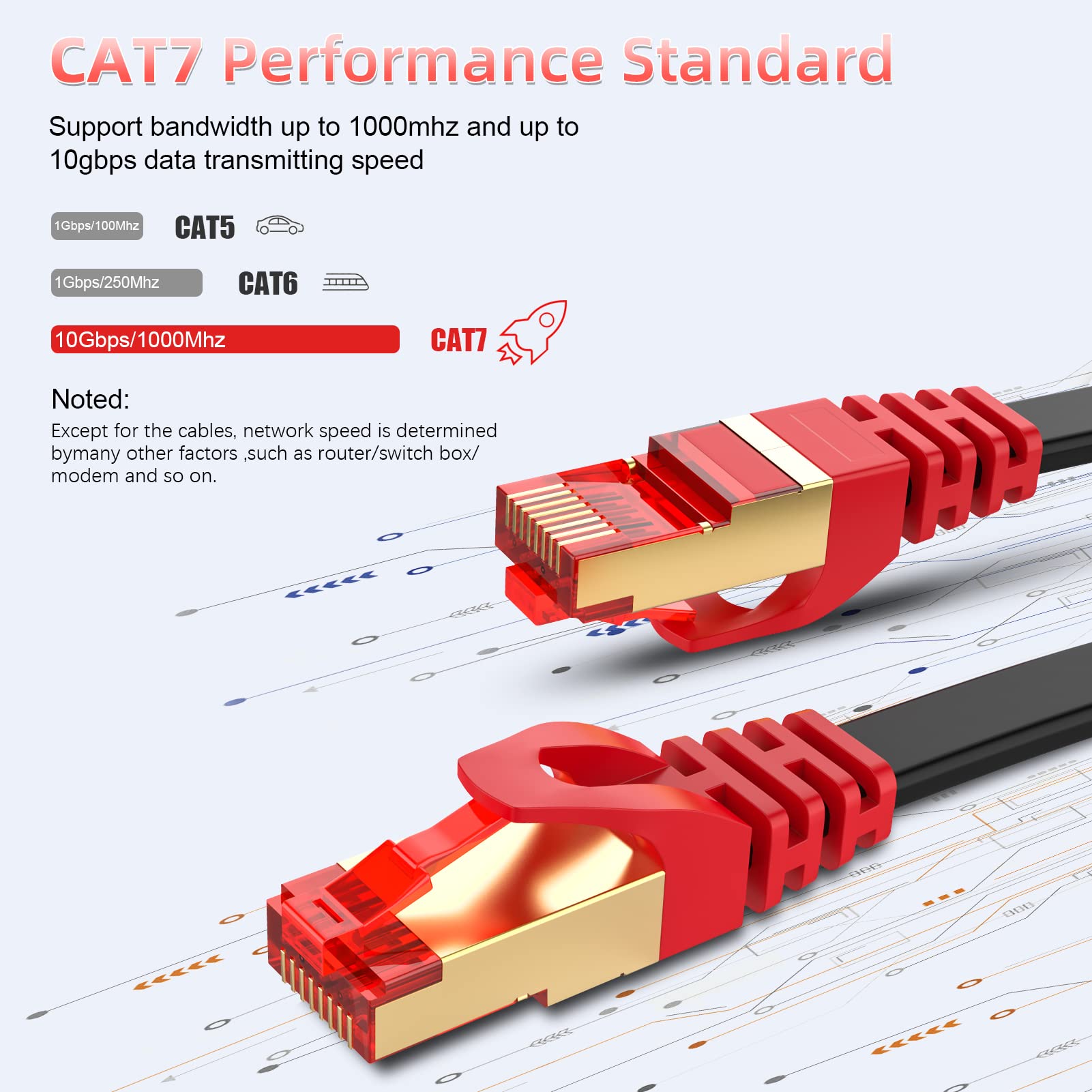 - Ultra Internet speedCat 7 ethernet cable support bandwidth up to 600MHz and boosts the speed of data transmission up to 10Gbps,transfer data at speeds for 10BASE-T 100BASE-TX (Fast Ethernet) 1000BASE-T/1000BASE-TX (Gigabit Ethernet) and 10GBASE-T (10-Gigabit Ethernet) at maximum speed. Surfing the internet, play games, stream video, music and other data at greater speed without worrying about network problems.
