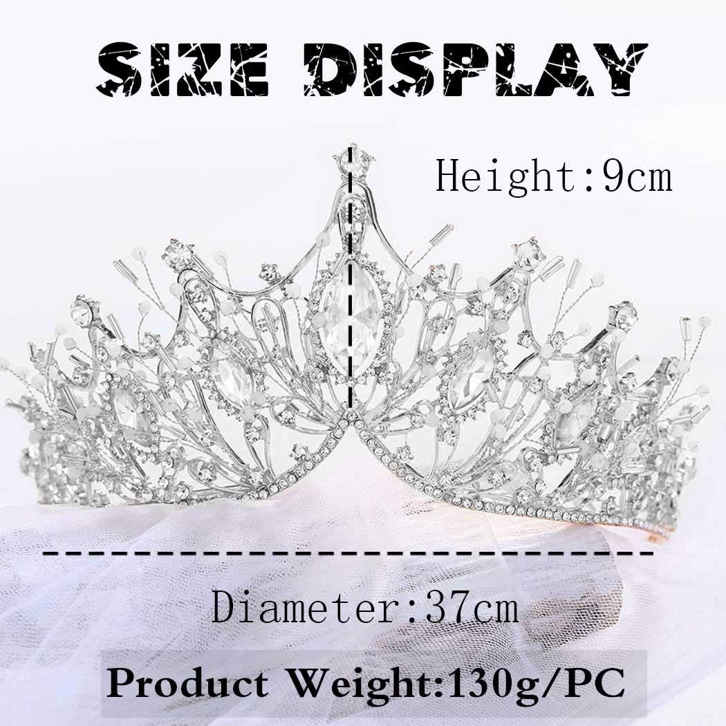 - Crystal tiara headband size:diameter:7.09inches(18cm), height: 2.8inches(7cm); 2 hair pins can be fastened by this accessories.