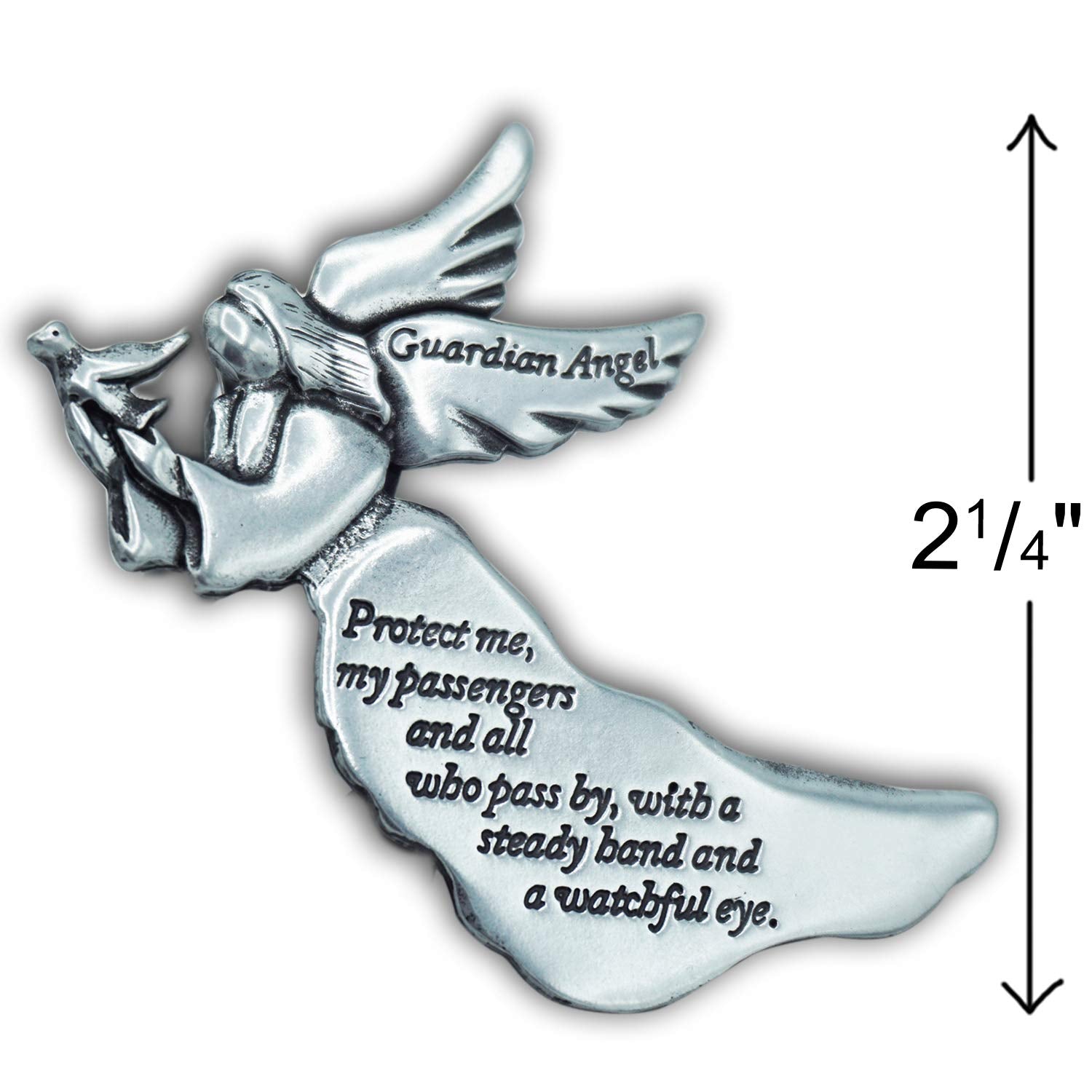 - A PRAYER OF PROTECTION: Each silver charm is engraved with an inspirational message that reads Guardian angel - protect me, my passengers and all who pass by, with a steady hand and a watchful eye