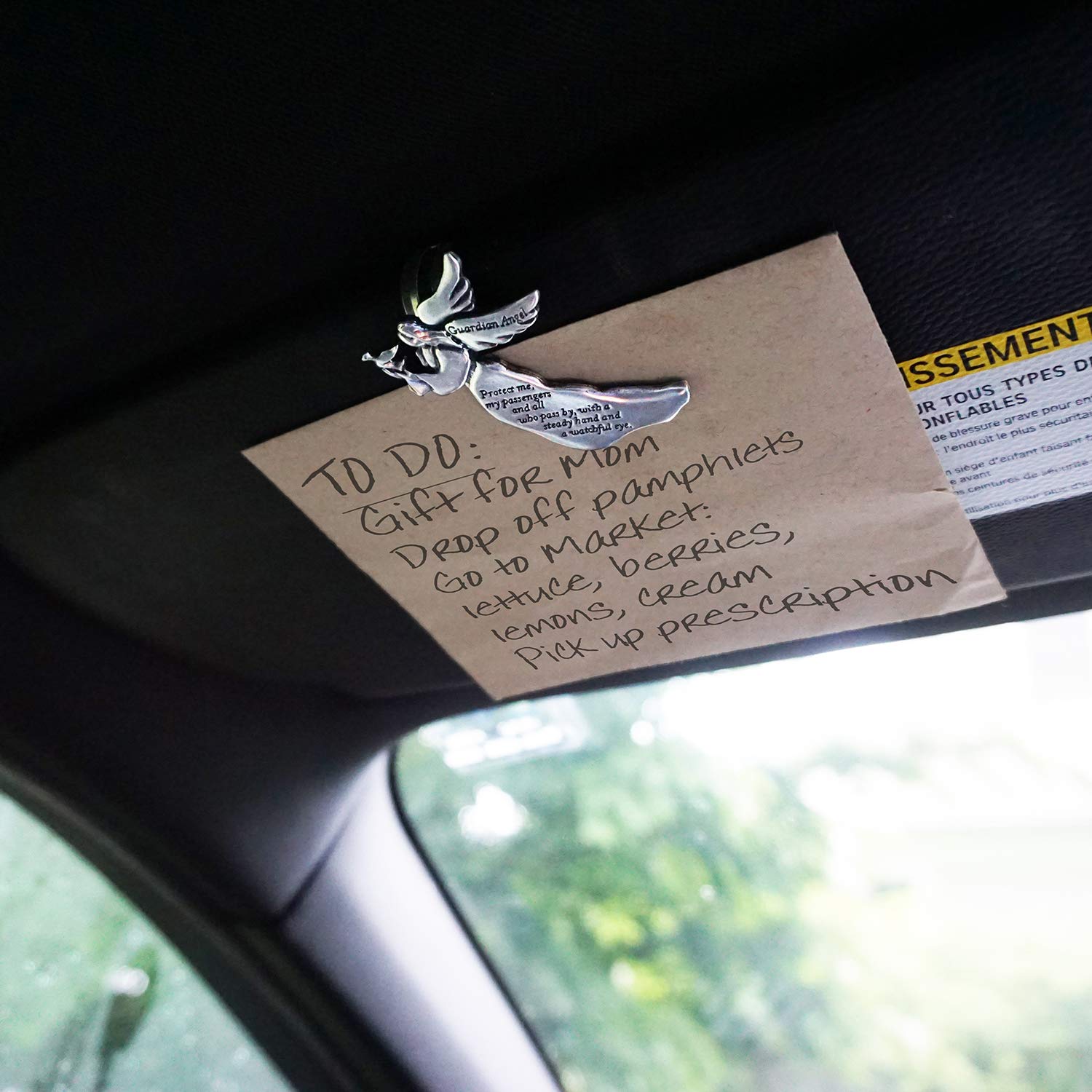 - EASILY ATTACHES TO YOUR CAR VISOR: Attach our heavenly guide to your car or truck visor to hold papers in place and bring protection during your travels