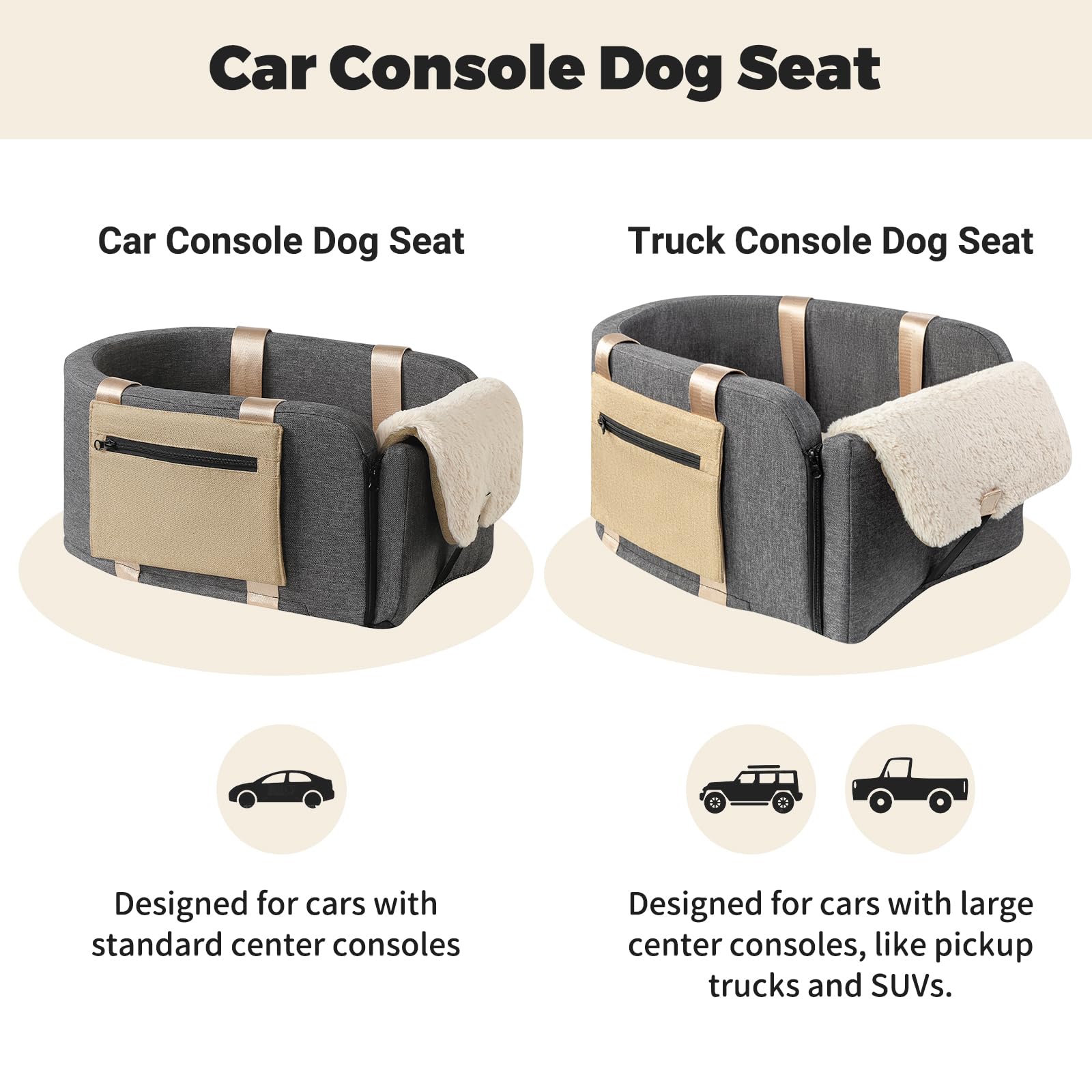 - SAFER & COMFY CAR RIDE - When it comes to internal dog car seat parts, the filling is the most important elements. The high-density sponge of this console dog car seat will absorb external force and offers the best protection against sudden braking. Wrapping the memory cotton in durable pure cotton fabric, making it look fuller and less wrinkles on the cover. The fabric is breathable and Anti-scratch. The dog console car seat is non-toxic, which is safer and healthier to pets.