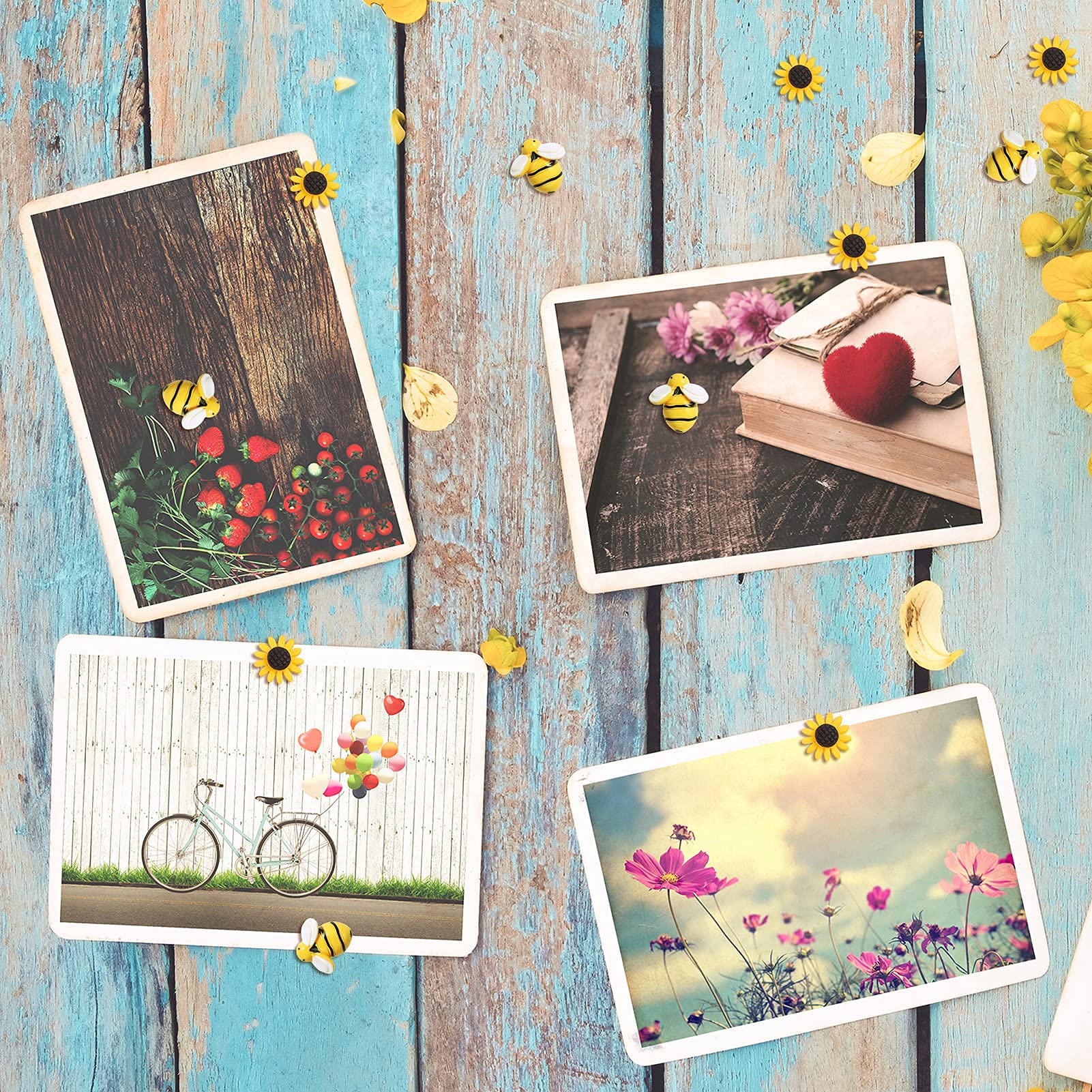 - [ Wide Use] What these resin sunflower pushpins can do: decorate pictures and photos, pinned maps and notes, decor for your craft; These floret thumb tacks are very suitable for bulletin boards.