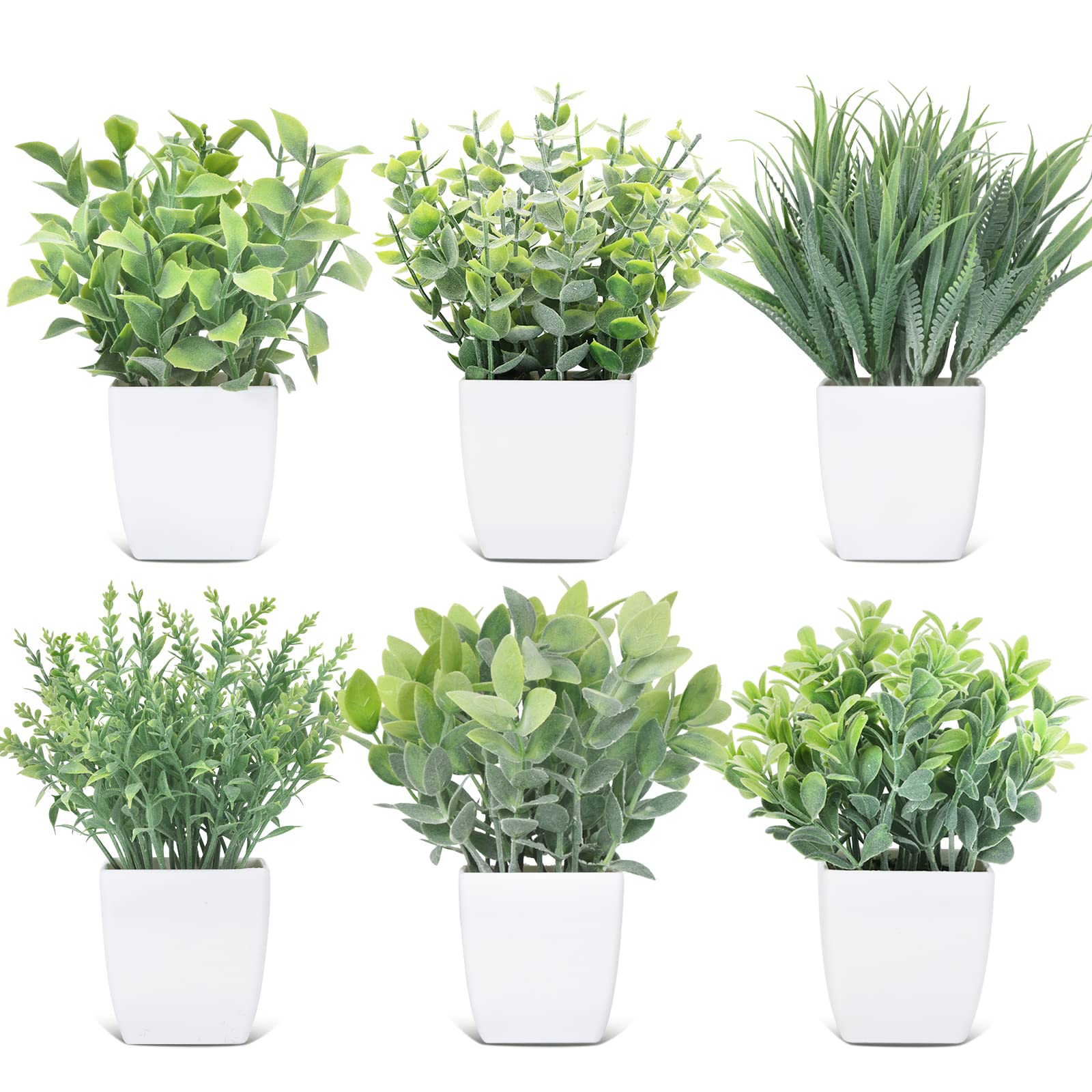 - Original Artificial Plants & Greenery – 6 Pack Small Fake Plants for Bedroom Aesthetic Mini Artificial Greenery Potted Plants Faux Eucalyptus Plant for Home Décor Indoor Bathroom Living Room Office Desk Decorations by CEWOR