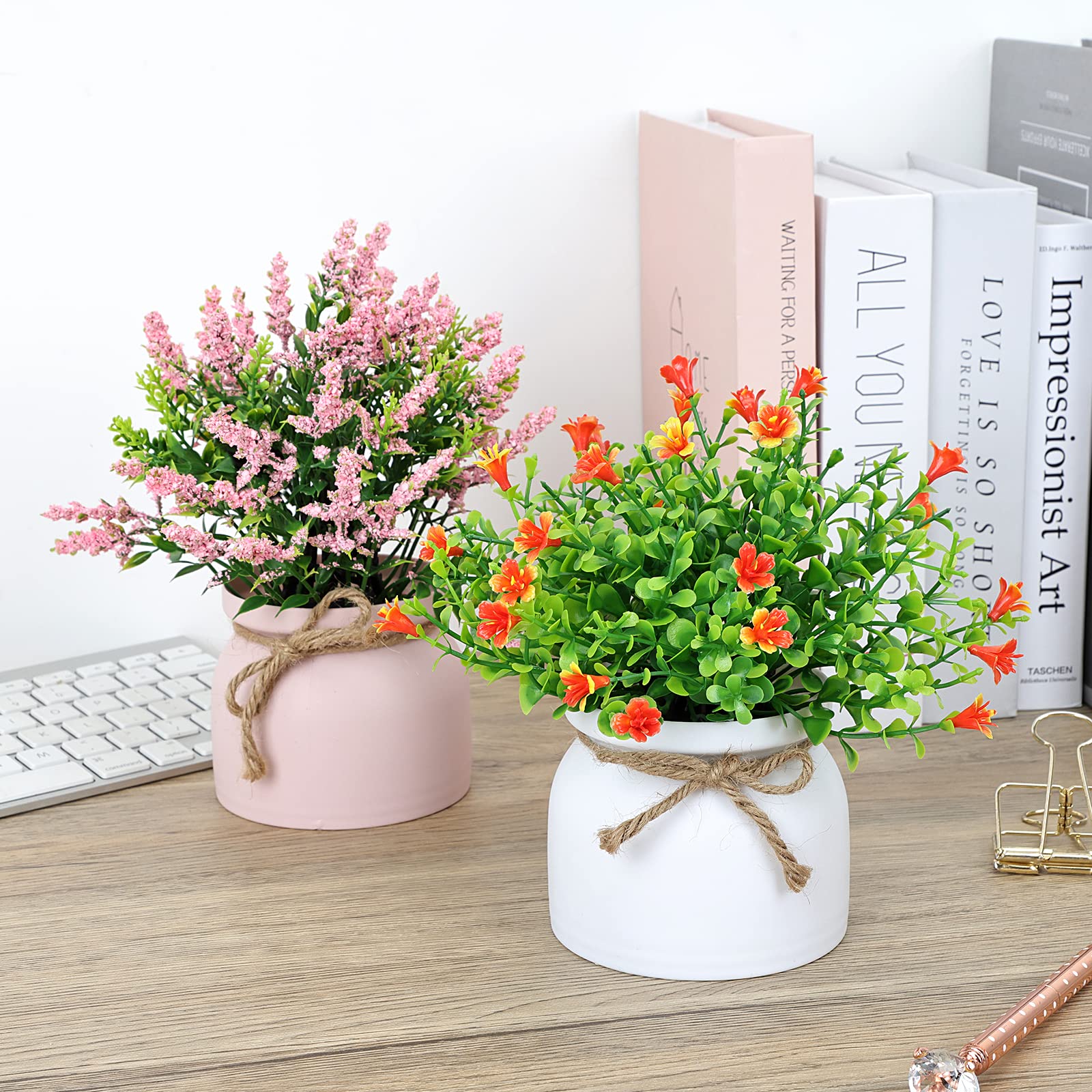- [Safe&Excellent Quality] The artificial flower and colored pots are all made of plastic, so they are waterproof, UV resistant, and not easy to fade. No odor, you do not need to spend time to take care of or watering, these fake potted plants can remain beautiful all year round.