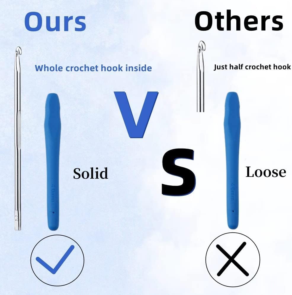 - Comfortable GripThese crochet hooks are made of sturdy material with soft handle,high quality for long time use.The crochet set greatly relieve or eliminate pain in the hands, wrists.The comfortable handle provides firm grip and allows you to crochet longer without pain.