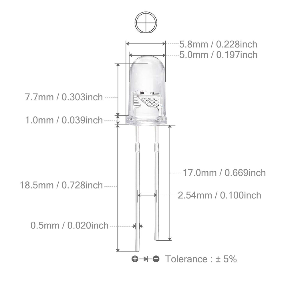 - Parameters : DC 3V-3.2V Volt 20mA, Polarity : Anode '+' (Longer Leg) | Cathode '-' (Shorter Leg), Clear Transparent Round Small Lens