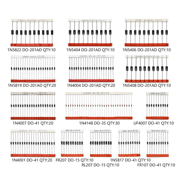 - Original Schottky Diodes – Chanzon 200pcs Diode Assorted Kit (1N4001 1N4004 1N4007 RL207 1N5404 1N5406 1N5408 UF4007 FR107 FR207 1N5817 1N5819 1N5822 1N4148) Fast Switching/Schottky/Rectifier Electronic Assortment 14 Values by CHANZON