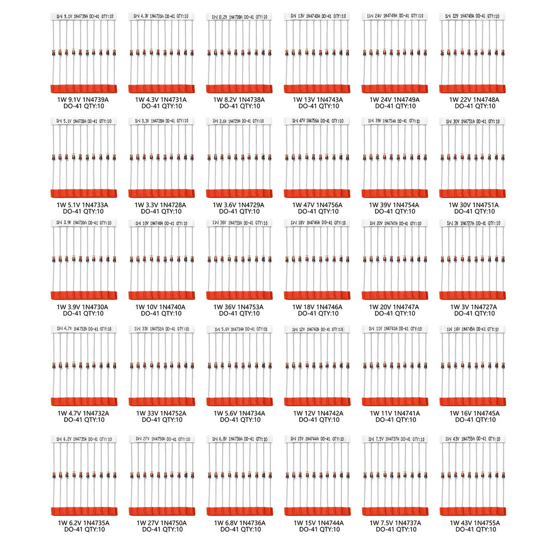 - Original Zener Diodes – Chanzon 30 Values 300pc 1W Zener Diode Assorted Kit (3V 3.3V 3.6V 3.9V 4.3V 4.7V 5.1V 5.6V 6.2V 6.8V 7.5V 8.2V 9.1V 10V 11V 12V 13V 15V 16V 18V 20V 22V 24V 27V 30V 33V 36V 39V 43V 47V) Assortment Set by CHANZON