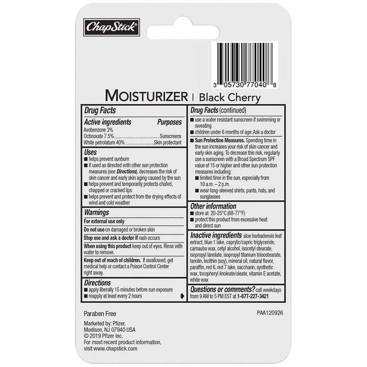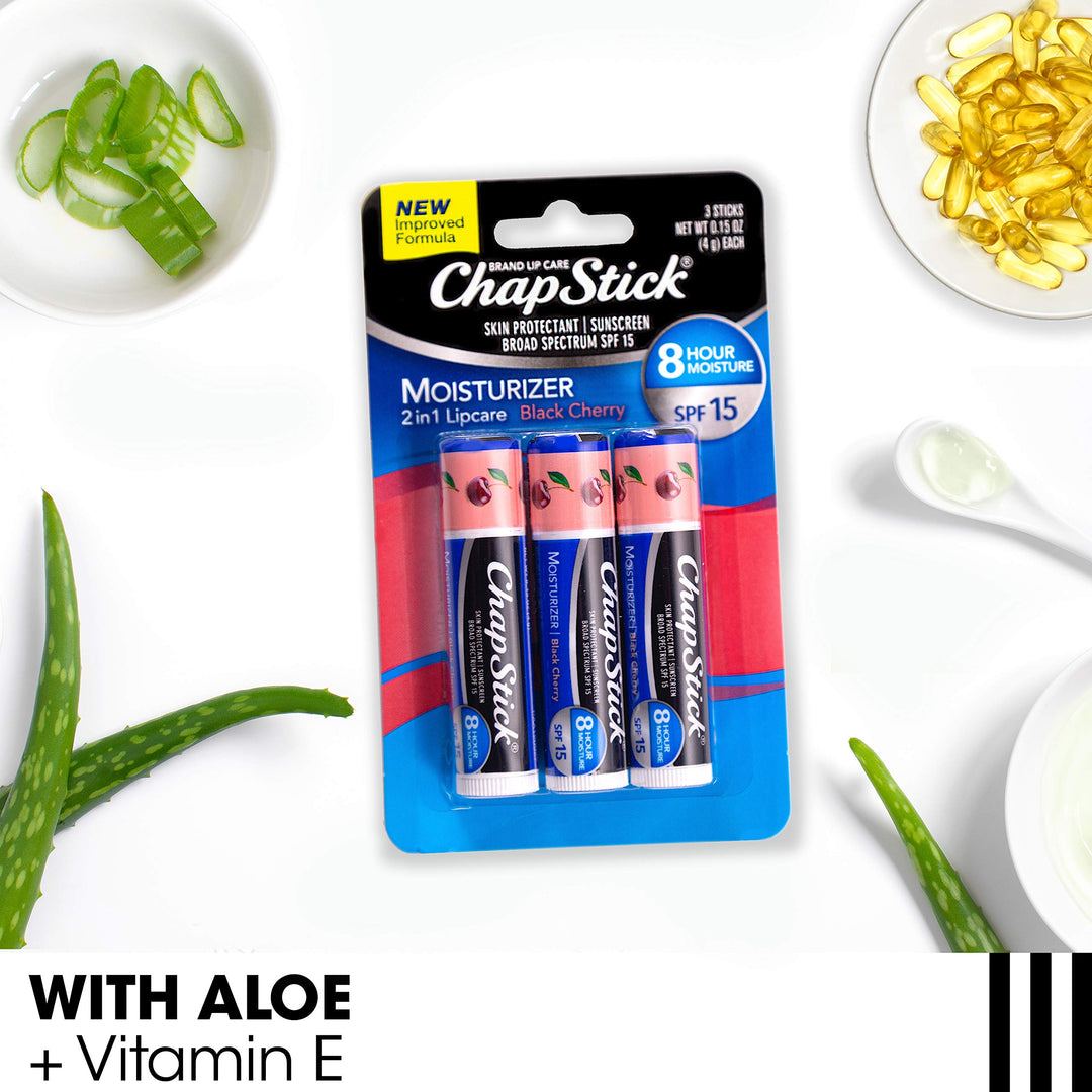 - Original Balms – ChapStick Lip Balm, Moisture 2 in 1 Lipcare Black Cherry Spf 15 3 Count by Chapstick