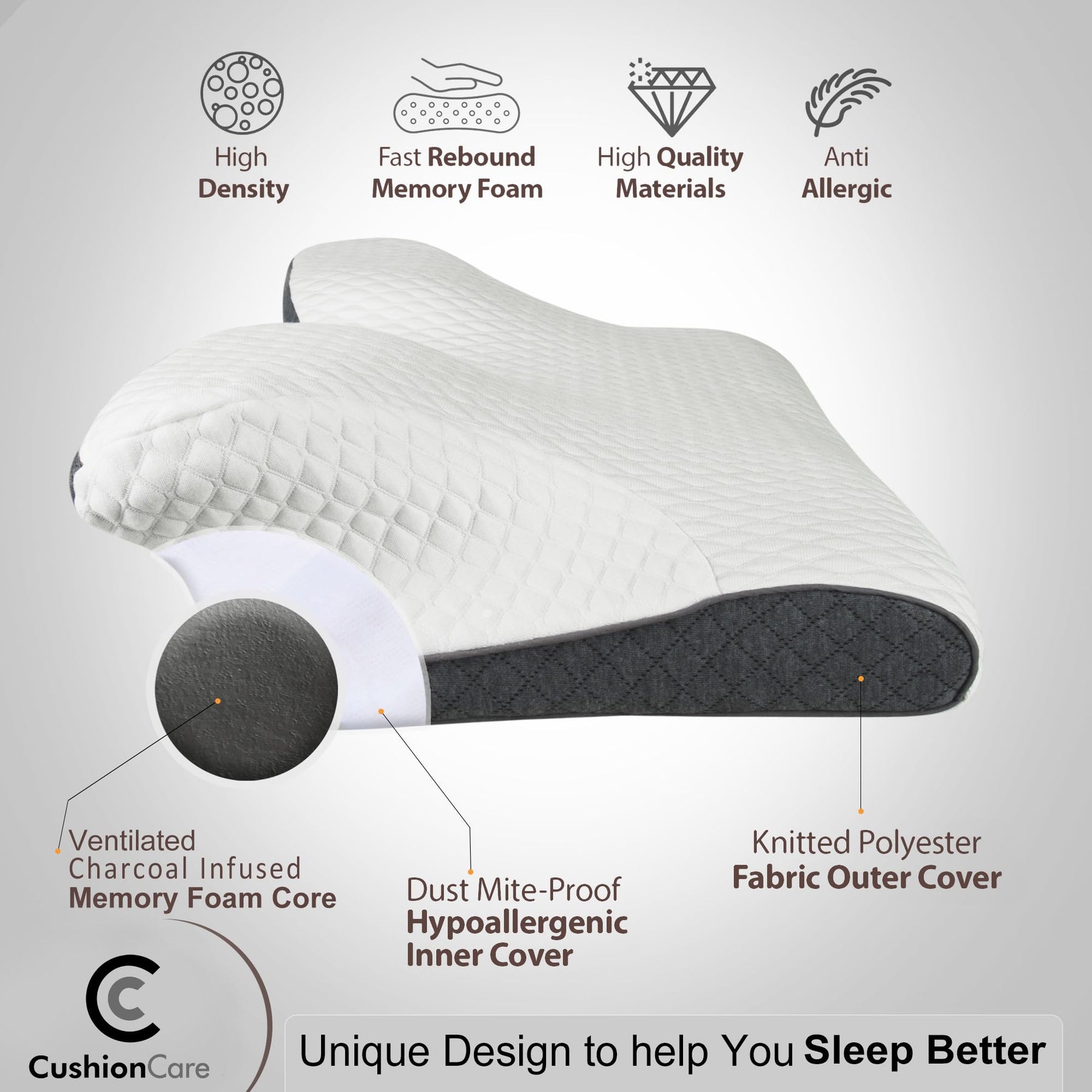 - Original Neck & Cervical Pillows – Charcoal Cervical Neck Pillow for Pain Relief Sleeping – Ventilated Memory Foam - Orthopedic Contour Pillow for Side, Back, Stomach Sleeper - Ergonomic Arm, Neck and Shoulder Support Pillows by CushionCare