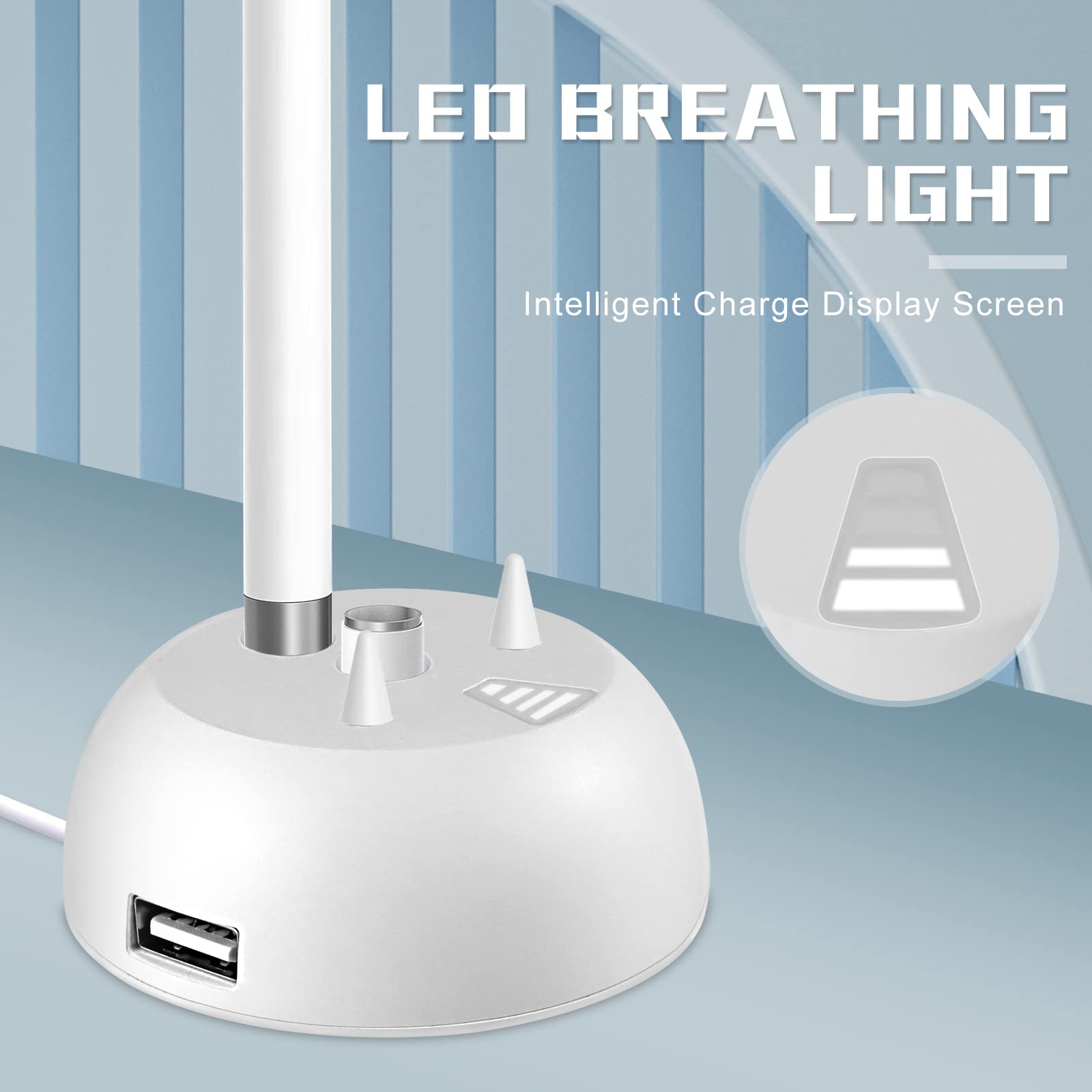 - LED Breathing Light When apple pencil is in the charging state, the intelligent LED light will automatically flash, and when the charging is completed, the breathing light will go out by itself, which takes 1 hour of full charge. Intelligent and safe charging technology escorts Apple Pencil. Allows you to charge your pencil while still looking stylish on your desk.