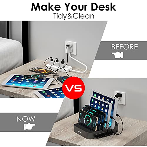 - Fast and SmartThis charging station for multiple devices will charge your smartphones, tablets up to 80% than other USB-A charger station with 2.0A or less. Our multi port charging station will automatically detect your devices and adjusts voltage for minimal charging time.
