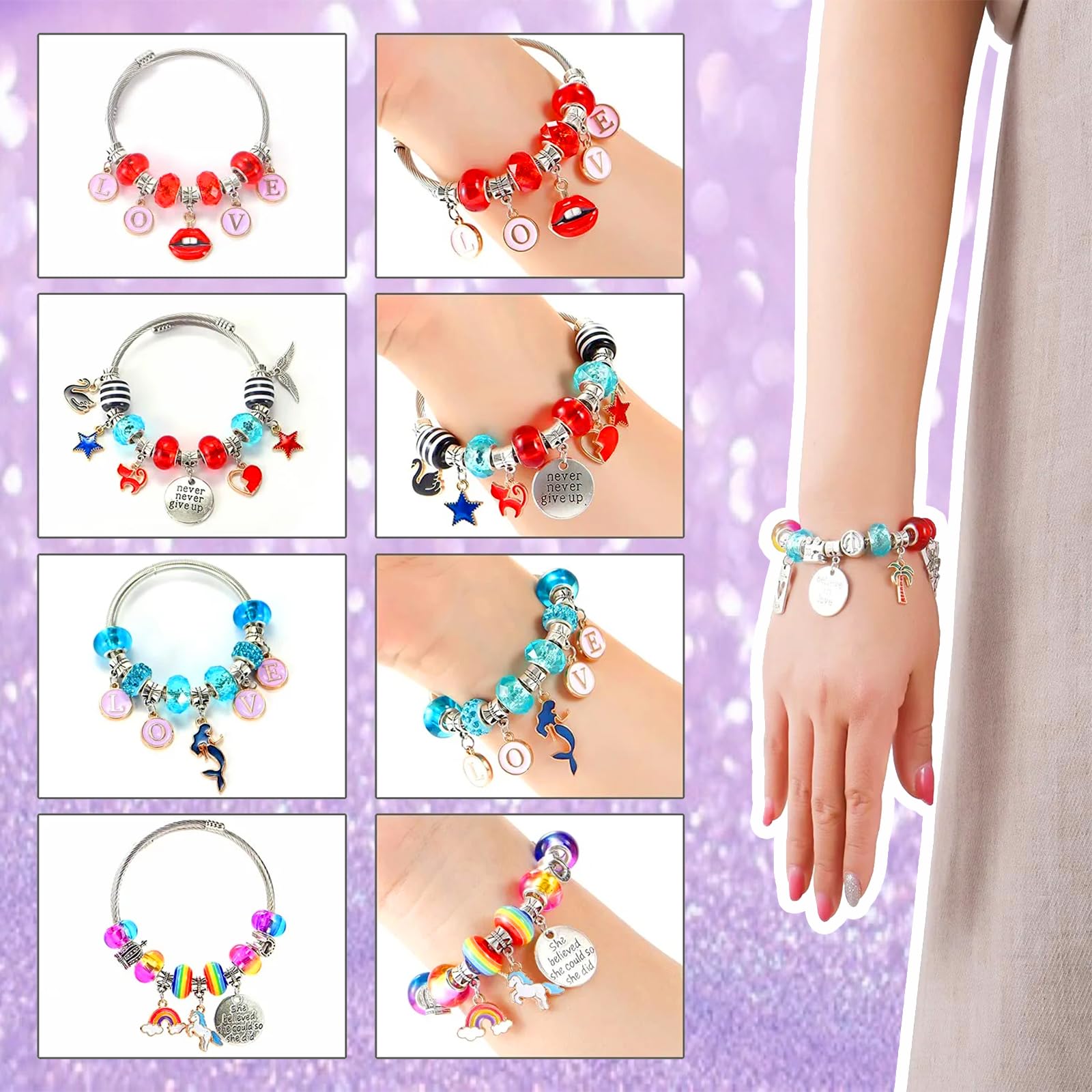 - Great Gift Idea for Girls:This charm bracelet making kit makes an excellent gift for girls who enjoy DIY projects. It's not only entertaining but also encourages their artistic expression and enhances their fine motor skills. Perfect arts & crafts toy for Christmas,birthdays, holidays, or any occasion that girls will cherish.