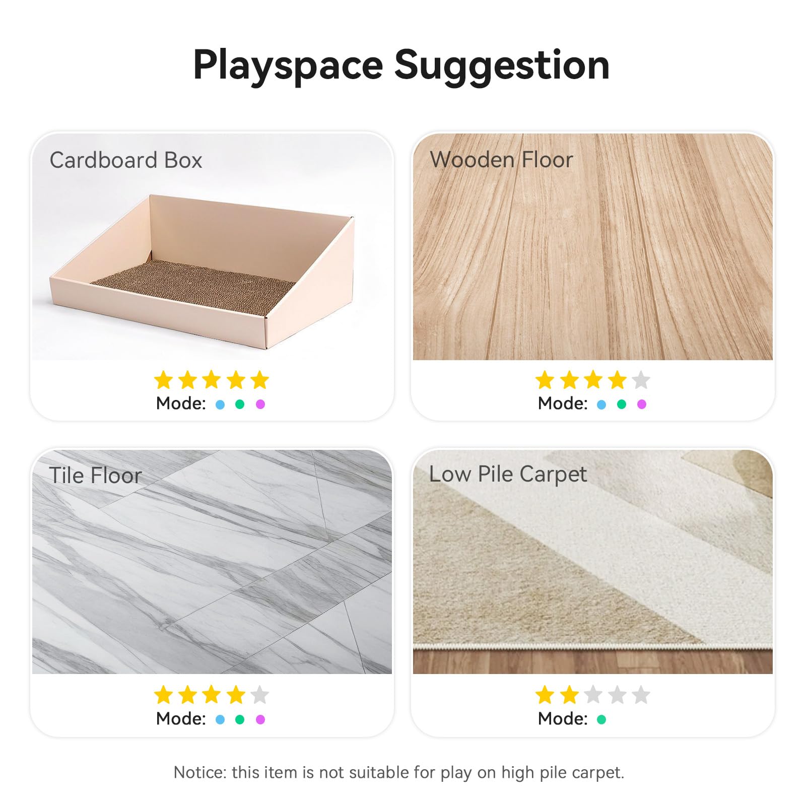 - Kindly Reminders: Cheerble motion activated cat toy is suitable for hard floors, not great on carpets. In addition, the ball is not waterproof. If you receive defective ball, please contact us. We will send you a new replacement.