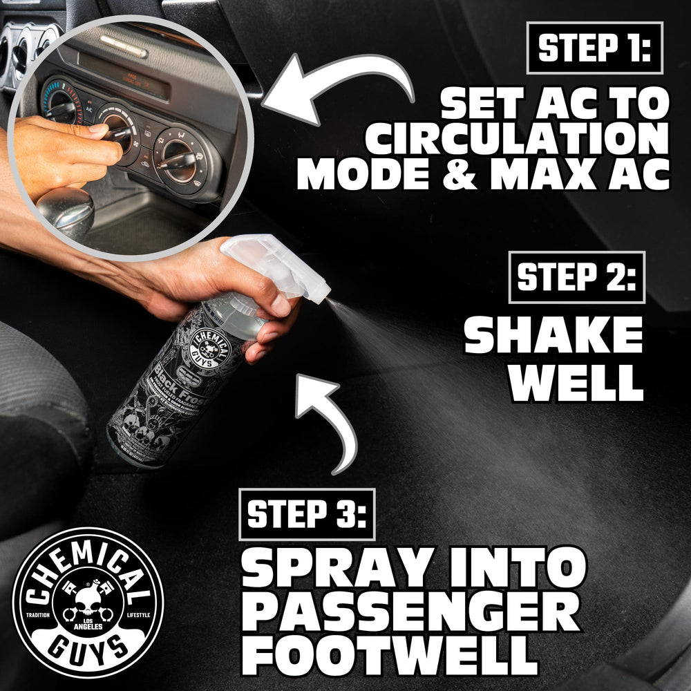 - Original Air Fresheners – AIR_224_16 Black Frost Air Freshener and Odor Eliminator, (Great for Cars, Trucks, SUVs, RVs, Home, Office, Dorm Room & More) 16 fl oz by Chemical Guys