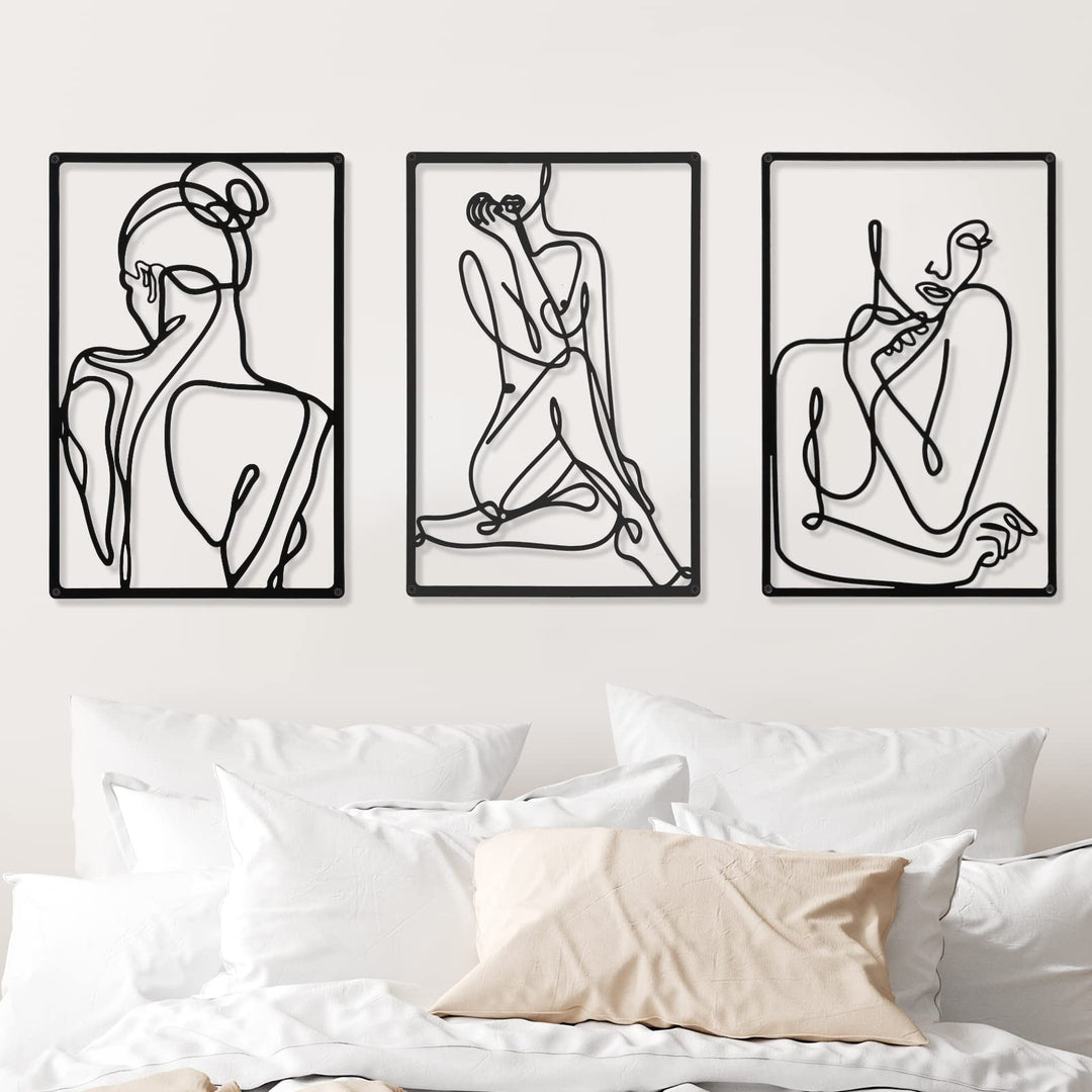 - Original Decorative Signs & Plaques – 3 Pieces Metal Minimalist Abstract Woman Wall Art Line Drawing Wall Art Decor Single Line Female Home Hanging Wall Art Decor for Kitchen Bathroom Living Room (Vibrant Style) by CHENGU
