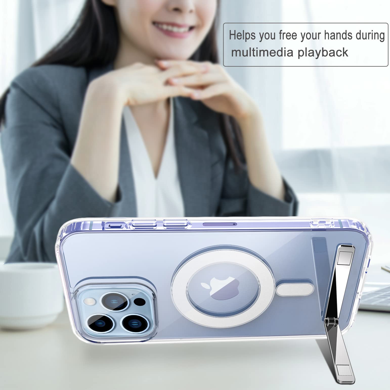 - Original Basic Cases – for iPhone 13 Pro Max Case Clear, [Three-Way Stand Magnetic Case] Compatible with MagSafe Charger [with Metal Kickstand] Transparent Hard PC Back Slim Shockproof Protective Case by chitri