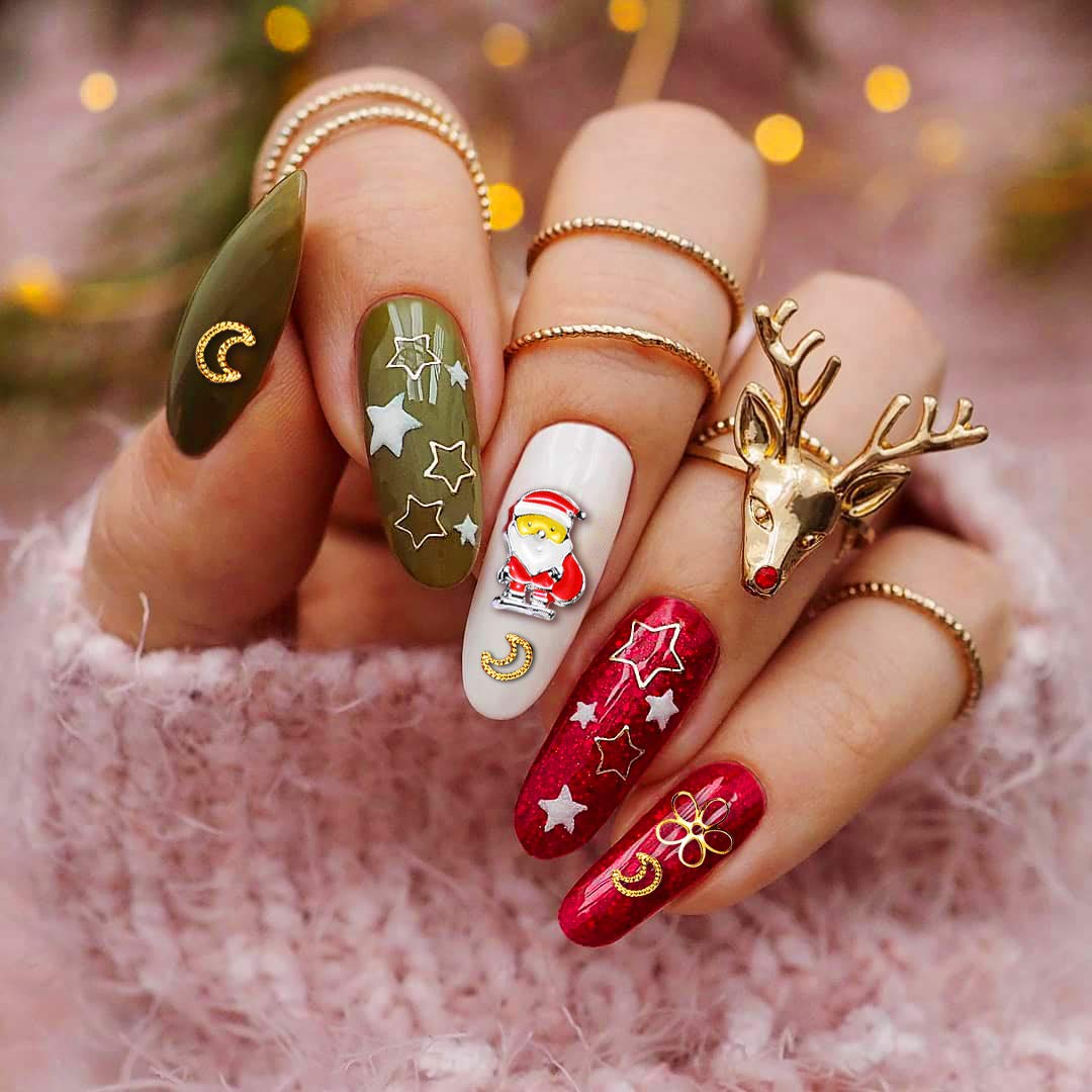 - Original Rhinestones & Decorations – Christmas Nail Rhinestones, Super Valued Over 1500pcs 6 Pots 3D Nail Charms Sequins Alloy Santa Reindeer Snowman Snowflake Garland, Metal Nail Studs Moon flowers Gems Jewelry DIY Nail Art Decoration by DRMODE