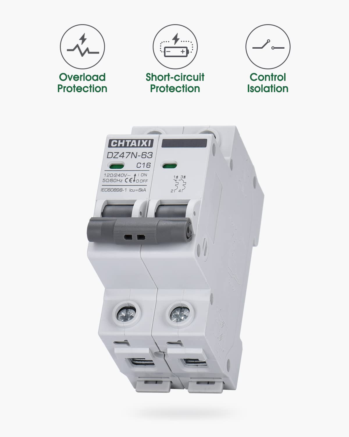 - Original Miniature Circuit Breakers – Chtaixi AC Miniature Circuit Breaker, 16 Amp 120V/240V 2 Pole DIN Rail Mount Circuit Breaker, Thermal Magnetic Trip, Solar AC Disconnect Switch MCB C16 by CHTAIXI