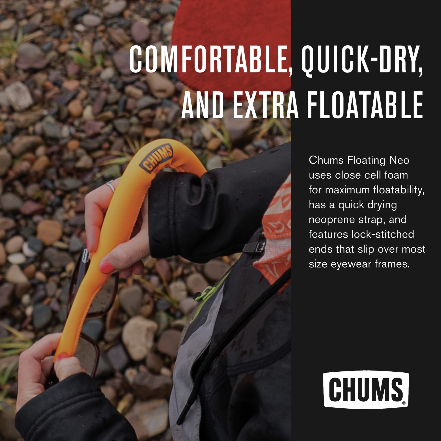 - Ultra Buoyant - Never lose a pair of sunglasses again! Filled with closed cell foam, the Chums Floating Neo Eyewear Leash is able to float eyeglass frames up to 35 g without taking on water. No more losing your favorite shades at the lake, beach, or pool