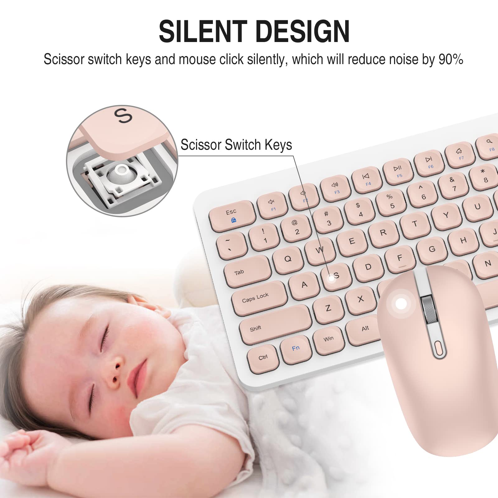 - Original Keyboard & Mouse Combos – Wireless Keyboard and Mouse Combo, Compact Full Size Wireless Keyboard and Mouse Set Less Noise Keys 2.4G Ultra-Thin Sleek Design for Windows, Computer, PC, Notebook, Laptop - Bright Pink by cimetech