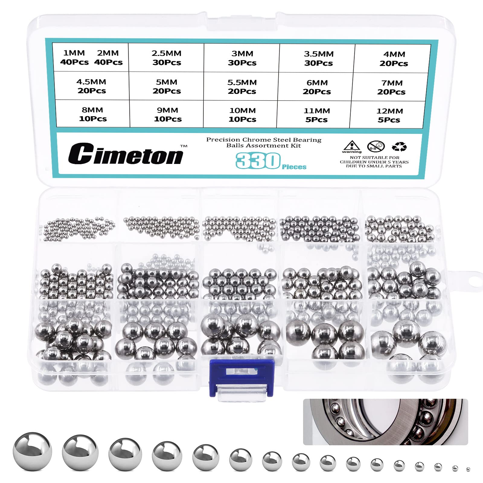 - Original Precision Balls – 330Pcs 16Sizes Precision Bearing Steel Ball Assortment Kit Including Sizes 1MM 2MM 2.5MM 3MM 3.5MM 4MM 4.5MM 5MM 5.5MM 6MM 7MM 8MM 9MM 10MM 11MM 12MM Metric by Cimeton