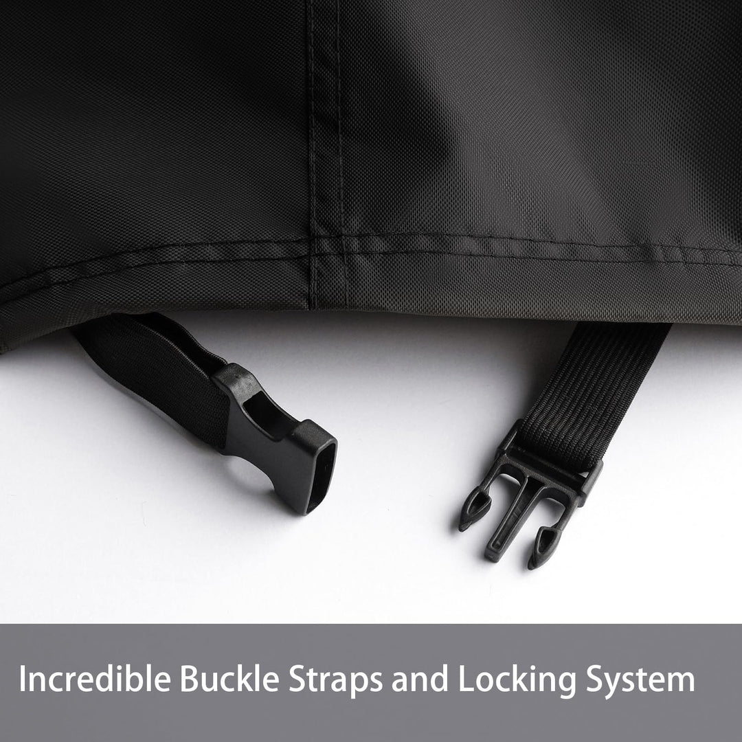 - WINDPROOF-with strap buckles over legs keep the cover protecting your patio table and chairs on the windiest days.