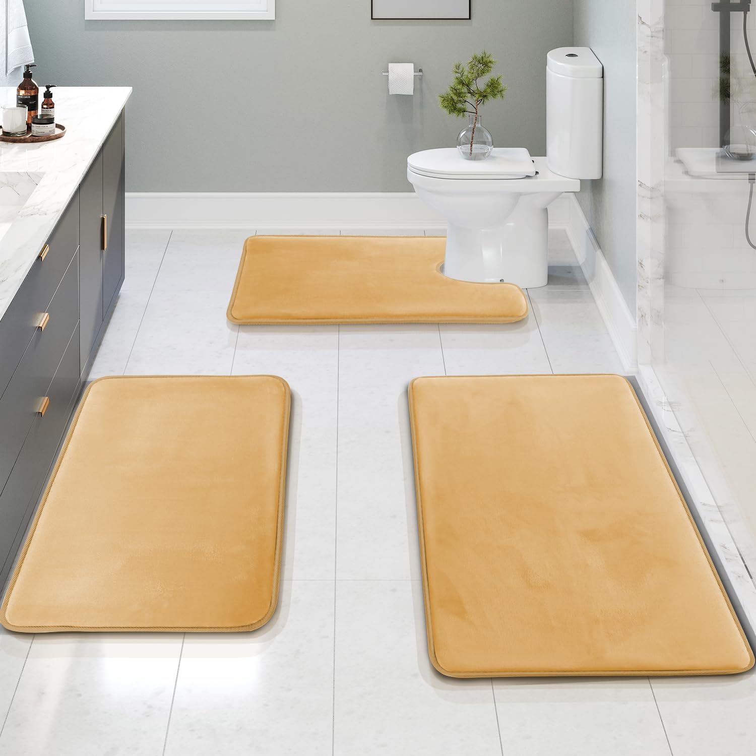 - Original Bath Rugs – 3 Piece Bathroom Rugs Bath Mat Set, Velvet Memory Foam Bath Mats for Bathroom - Non-Slip, PVC Backing Bath Rugs, Washable Bathroom Rug Mats - Dries Quickly, Beige Bathroom Rug Set by Clara Clark