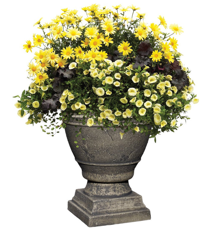 - Stunning classic urn with a lightweight composition - a silicone, polypropylene, and stone dust blend - extremely durable and UV protected for years of use