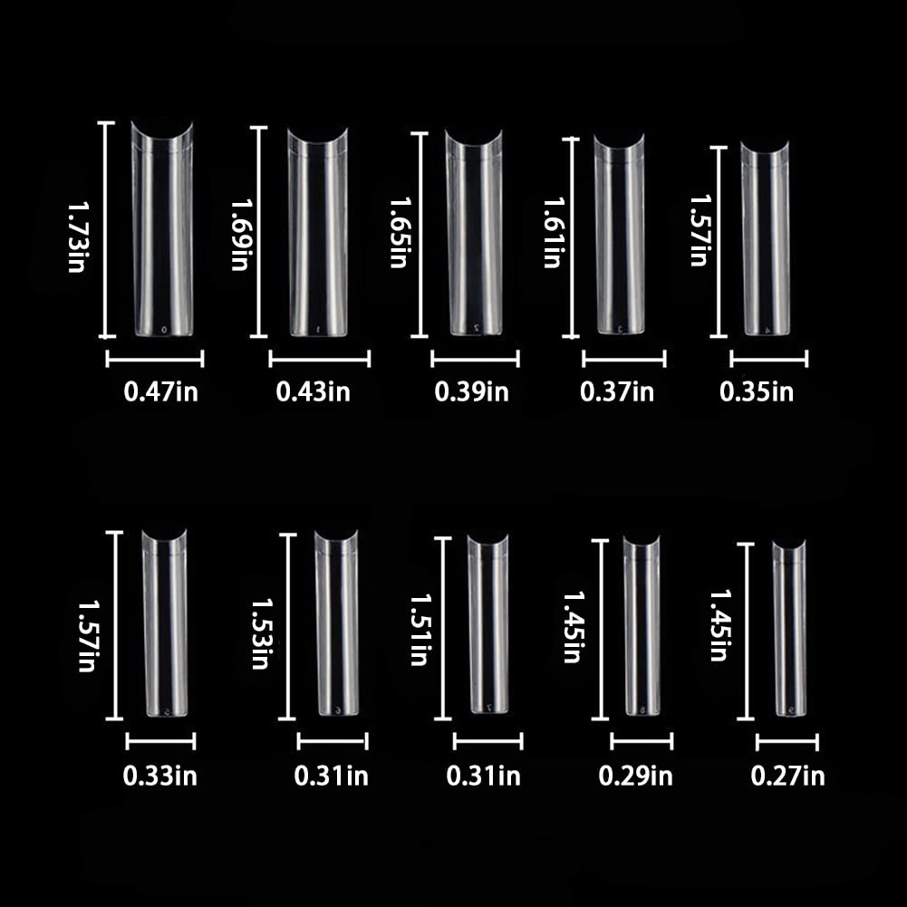 - Original Artificial Nails – Clear Acrylic Nail Tips - No C Curve XXL Square Nail Tips 500pcs Extra Long Half Cover False Nails for Nail Salons, DIY Nail Art 10 Sizes with Box (Clear) by TISENPET