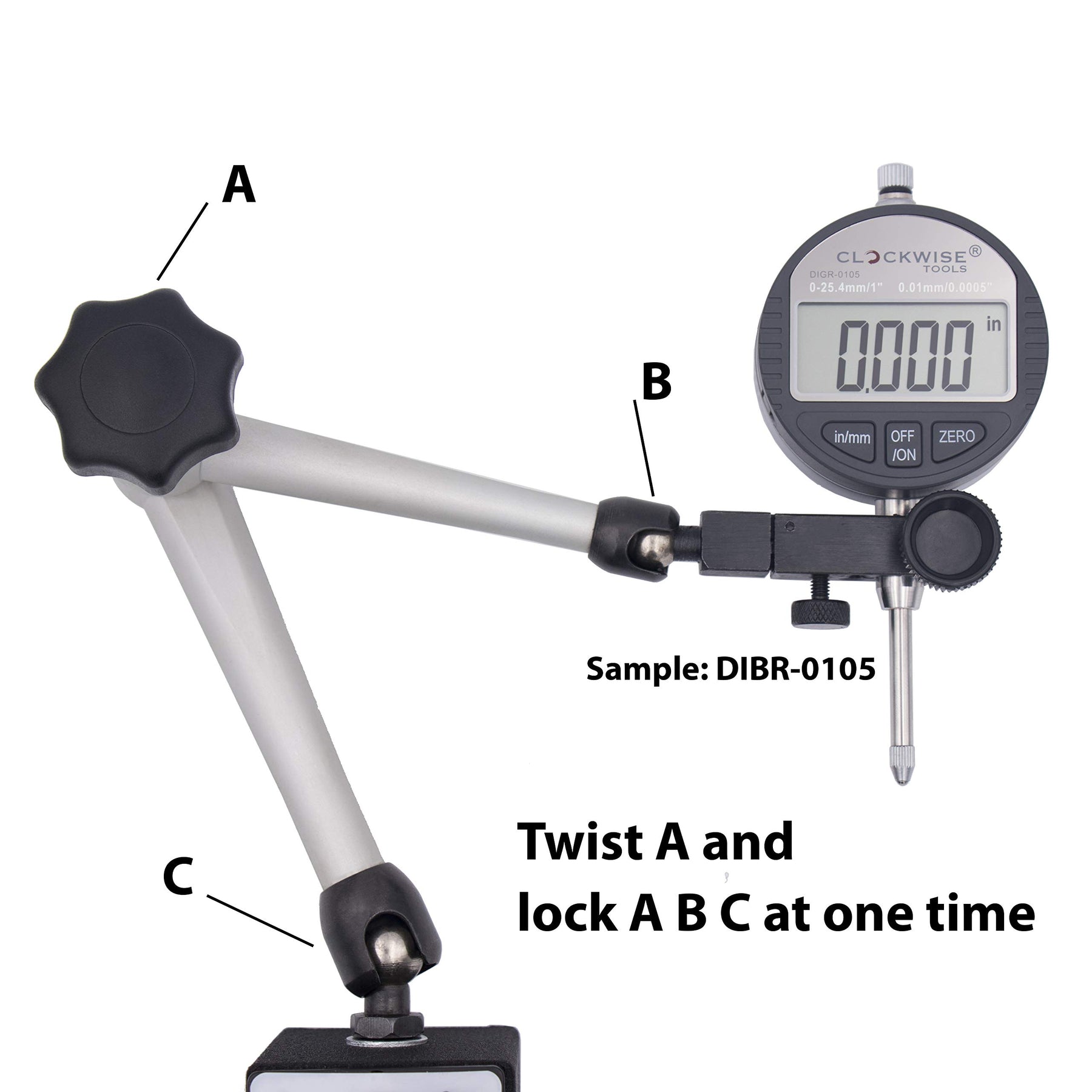 - Original Electronic Indicators – Digital Indicator with Magnetic Base Holder Stand, DIBR-0105 0-1 Inch/25.4mm, Inch/Metric Conversion, Auto Off by Clockwise Tools