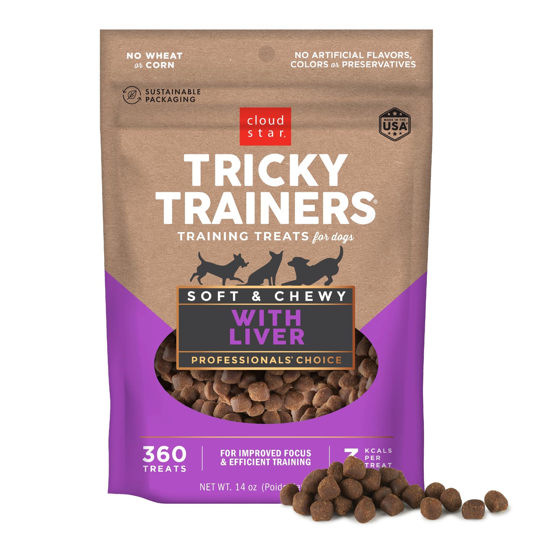 - Original Cookies, Biscuits & Snacks – Tricky Trainers Soft & Chewy Dog Training Treats 14 oz. Pouch, Liver Flavor, Low Calorie Behavior Aid with 360 treats by Cloud Star