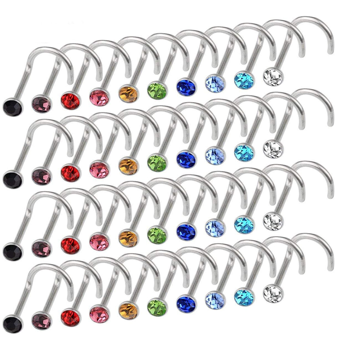 - Original Piercing Kits – 100pcs Mixed Color Stainless Steel Rhinestone Piercing Nose Studs Rings Body Piercing Hooks Hypoallergenic Screw Shape by cnomg